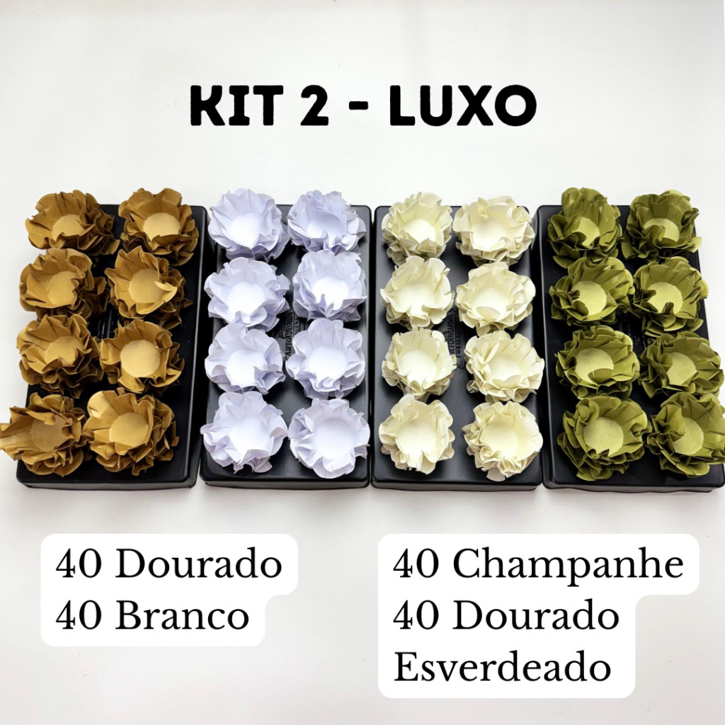 Kit Luxo com 160 Forminhas para Doces Finos| Dourado, Branco, Champanhe e Dourado Esverdeado