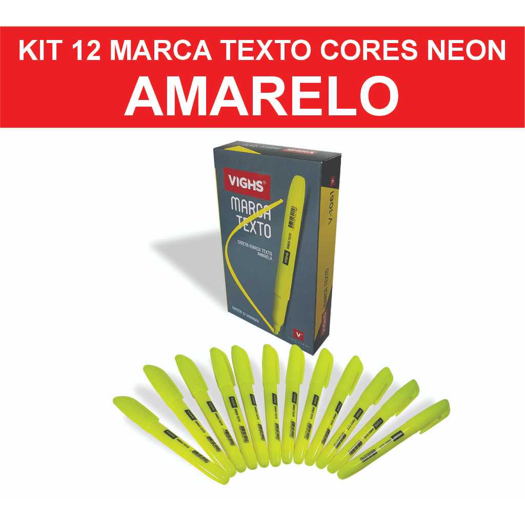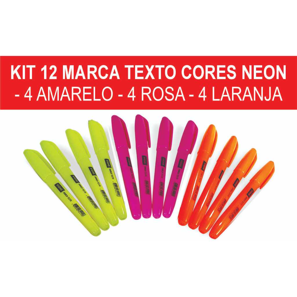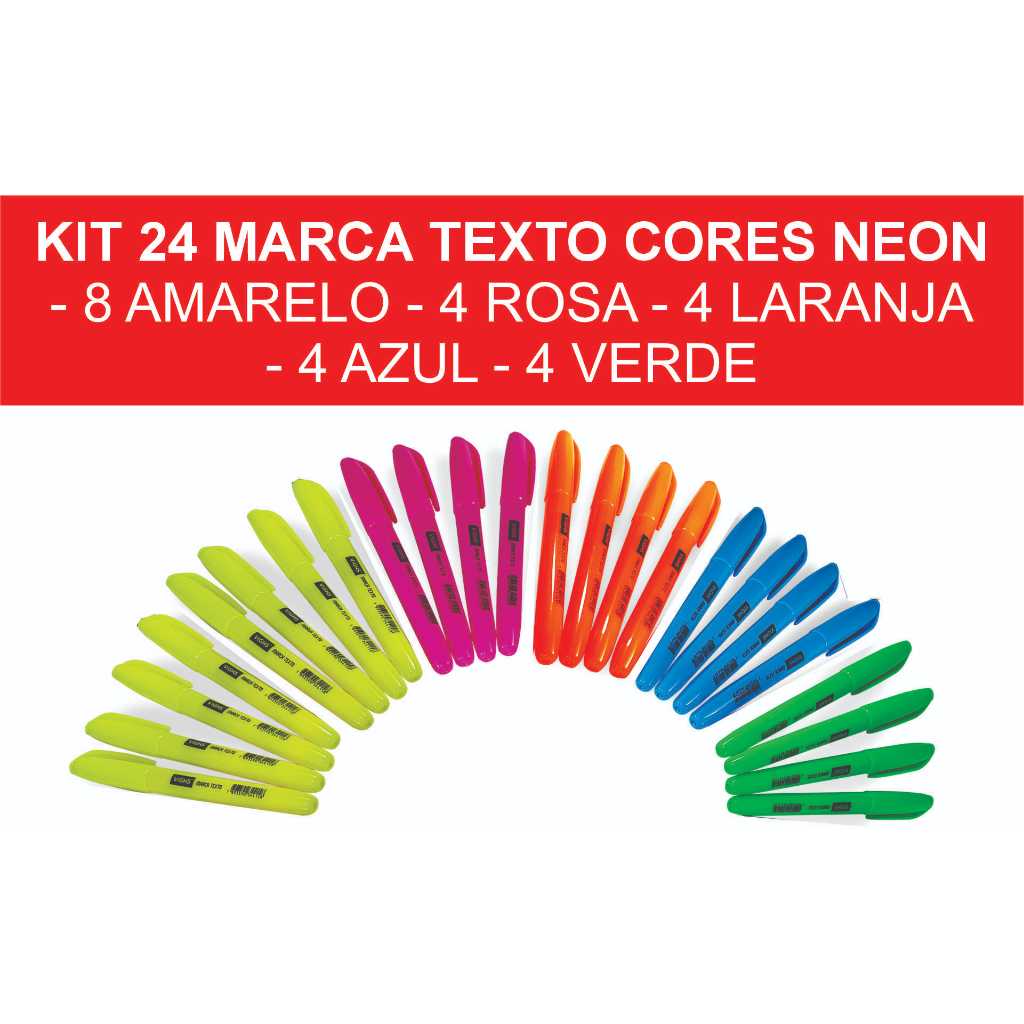Kit 36 Canetas Marca Texto Neon Fluorescente Vighs – Cores Vivas Secagem Rápida Escolar Escritório