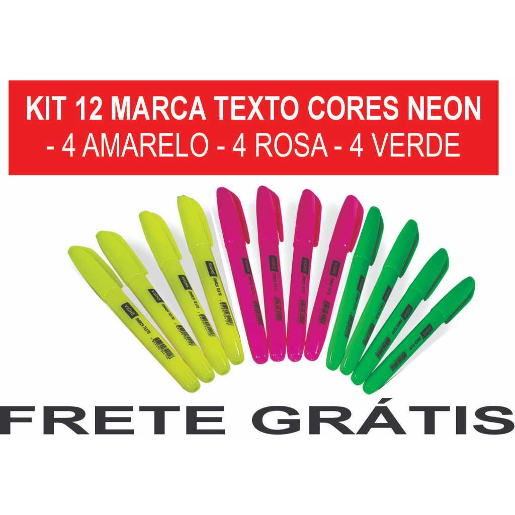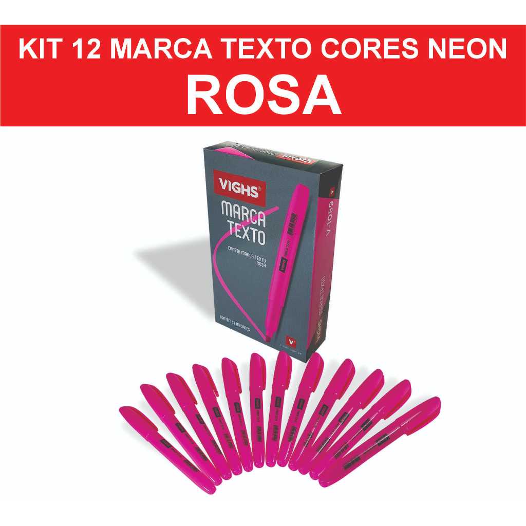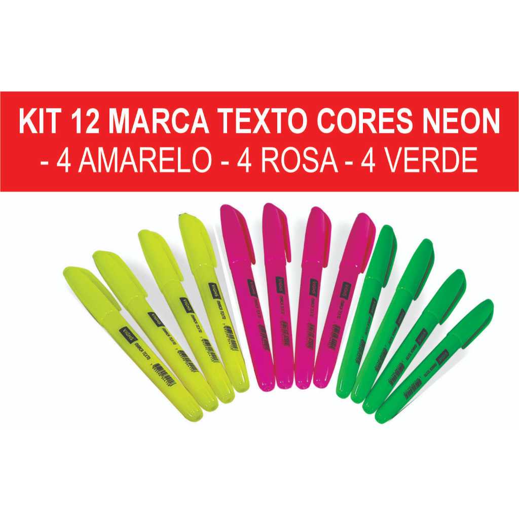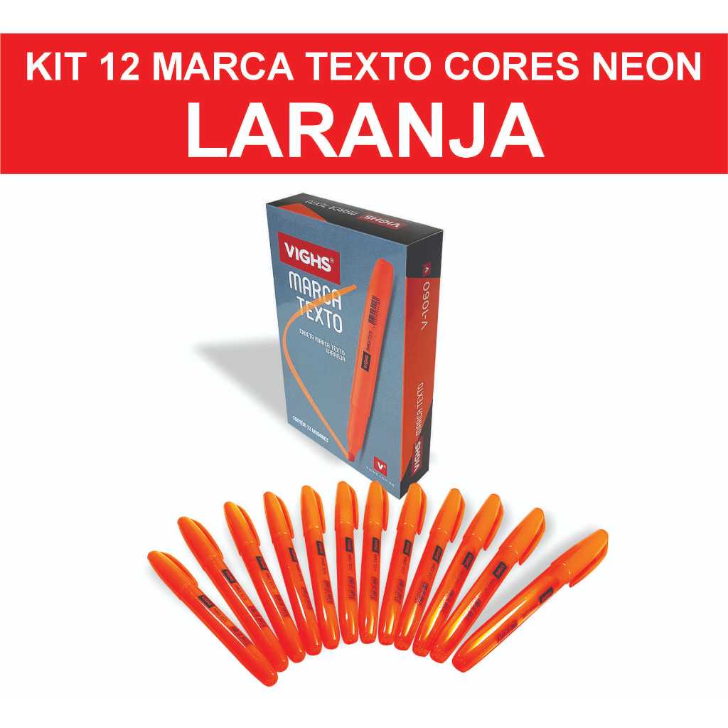Kit 36 Canetas Marca Texto Neon Fluorescente Vighs – Cores Vivas Secagem Rápida Escolar Escritório