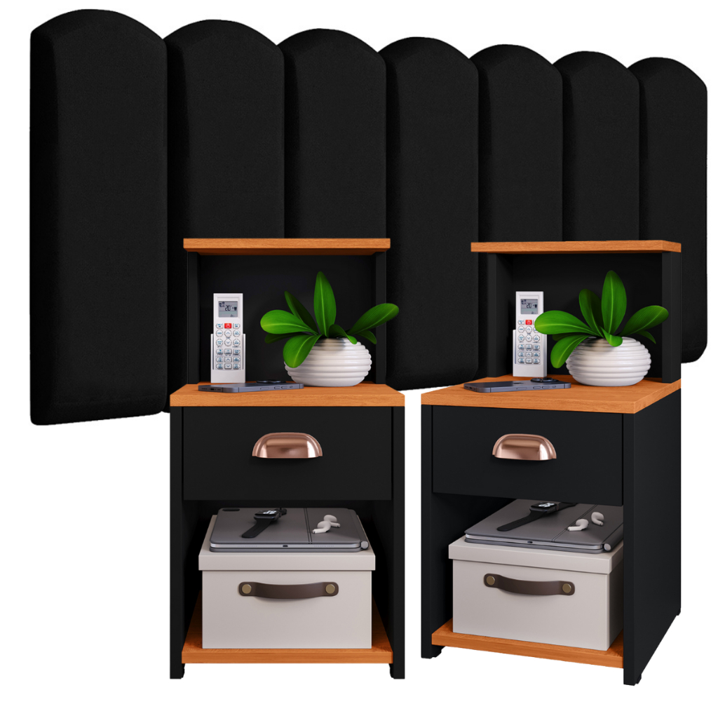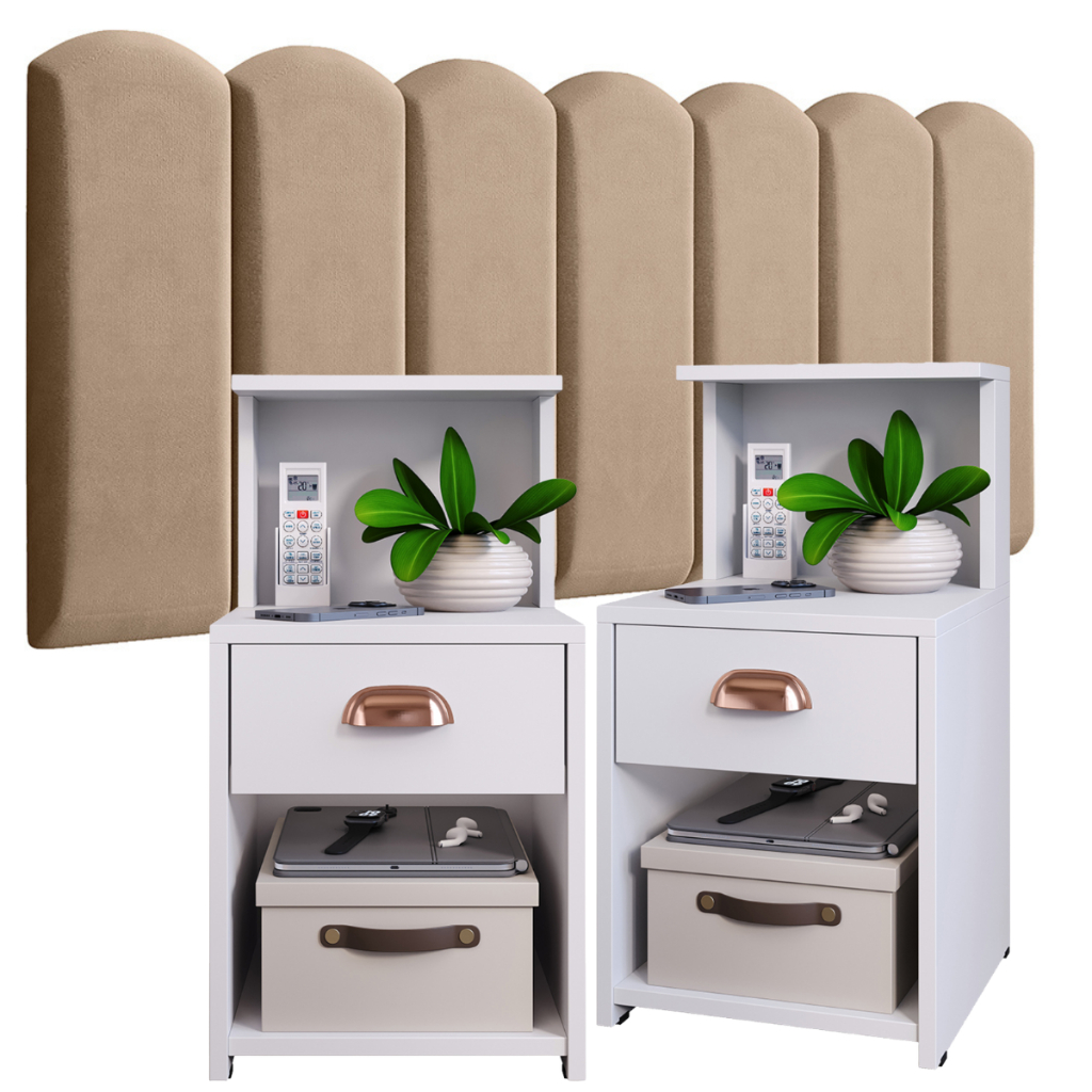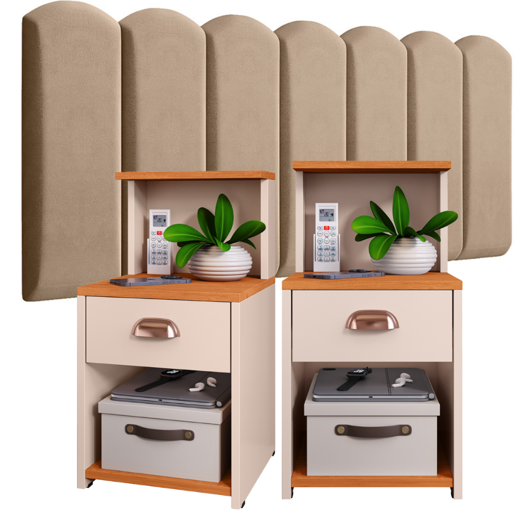 Conjunto de Cabeceiras em Módulos NÚVEM com 1 kit Mesa de Cabeceira CLÉO com 1 Gaveta e Prateleira - Cores