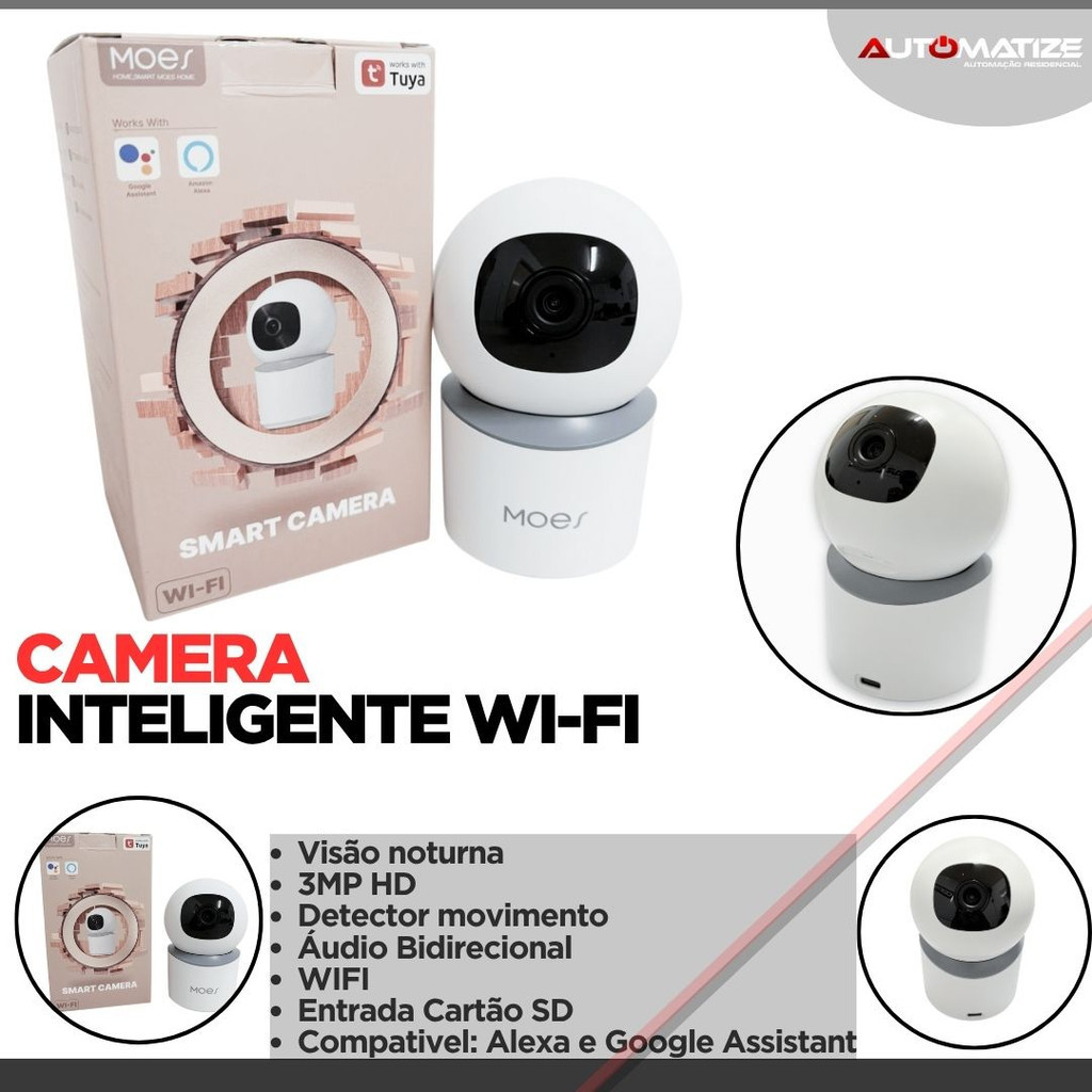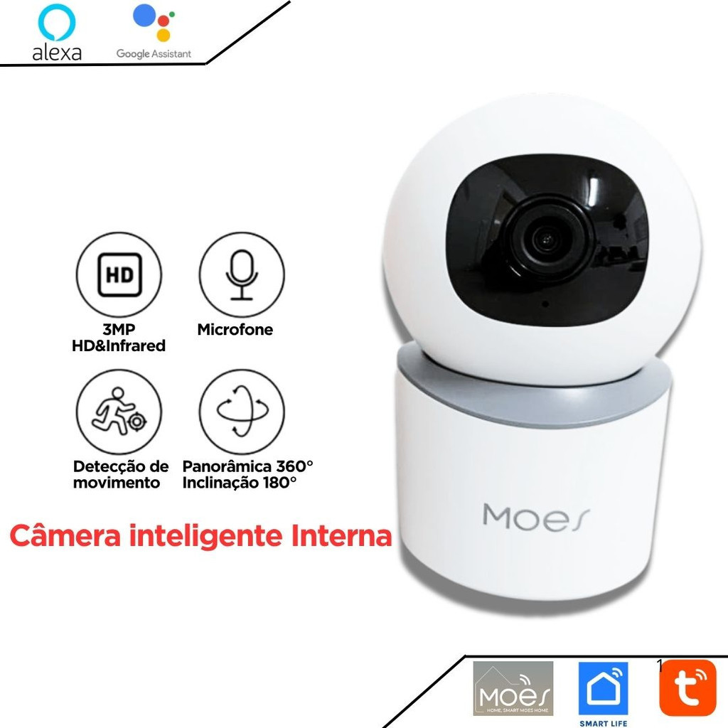 Câmera Inteligente de Segurança 3MP com App Tuya, Alexa e Google