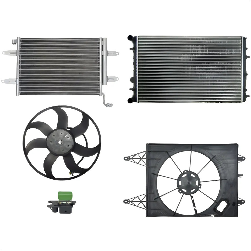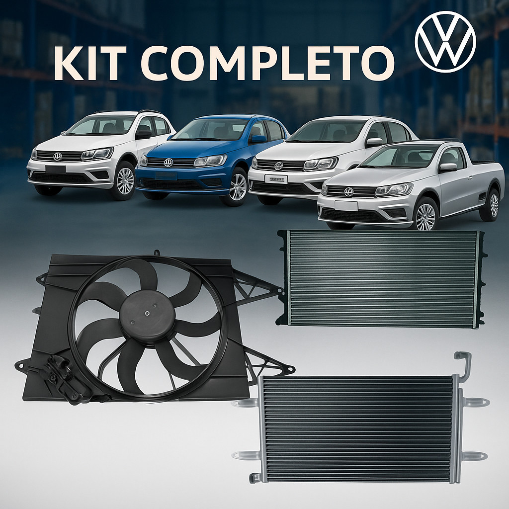 Kit Arrefecimento VW Gol Saveiro Voyage Fox Polo G5 G6 G7 G8 com Radiador, Condensador e Eletroventilador