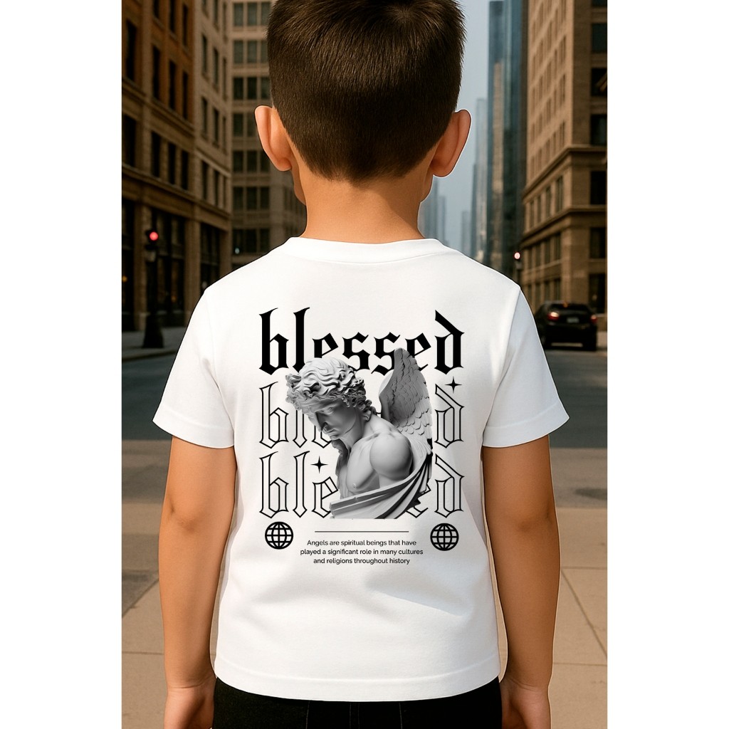 Camiseta Criança Anjo Blessed Blusa Unissex Malha Algodão Premium Moda Streetwear Passeio Escola