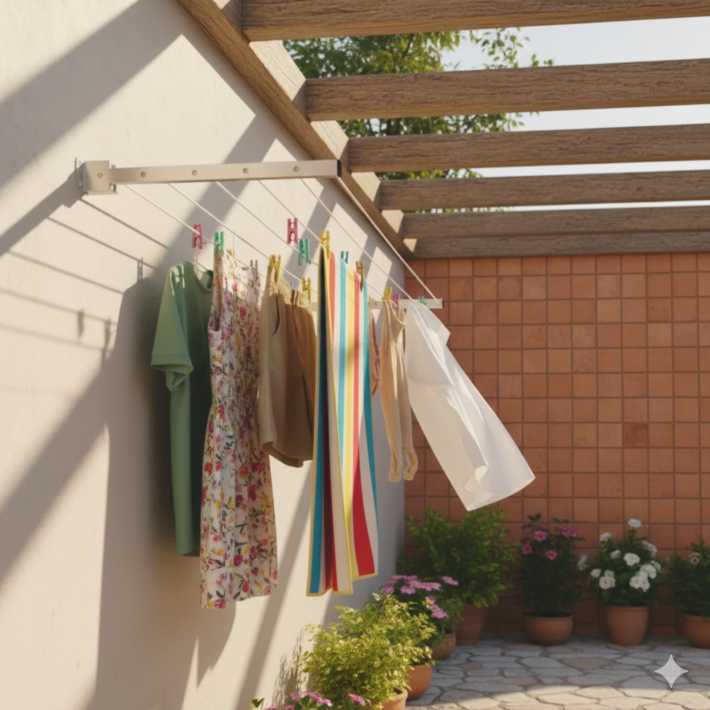 Varal de Roupa de Parede Retrátil 100% alumínio para Sacada Até 80kg