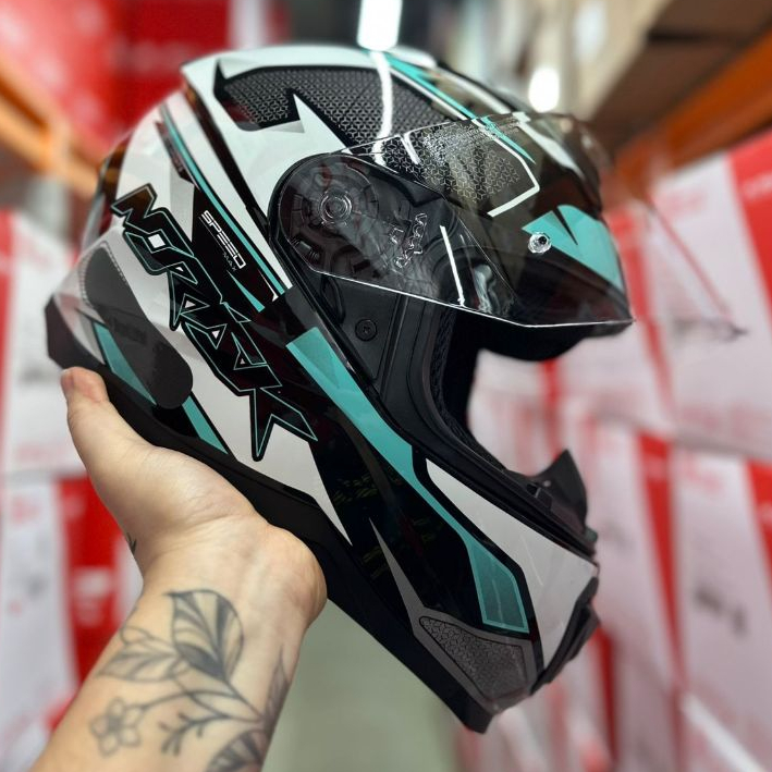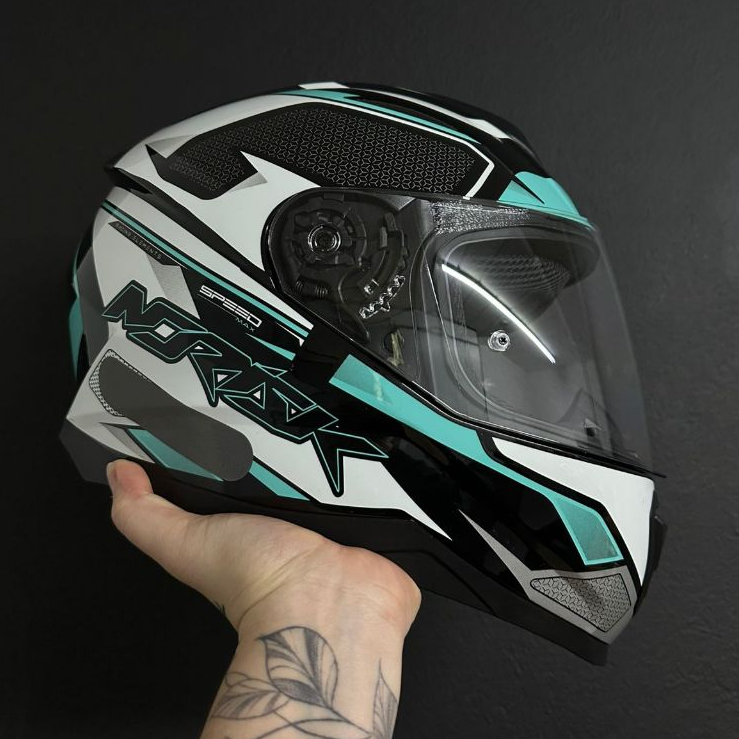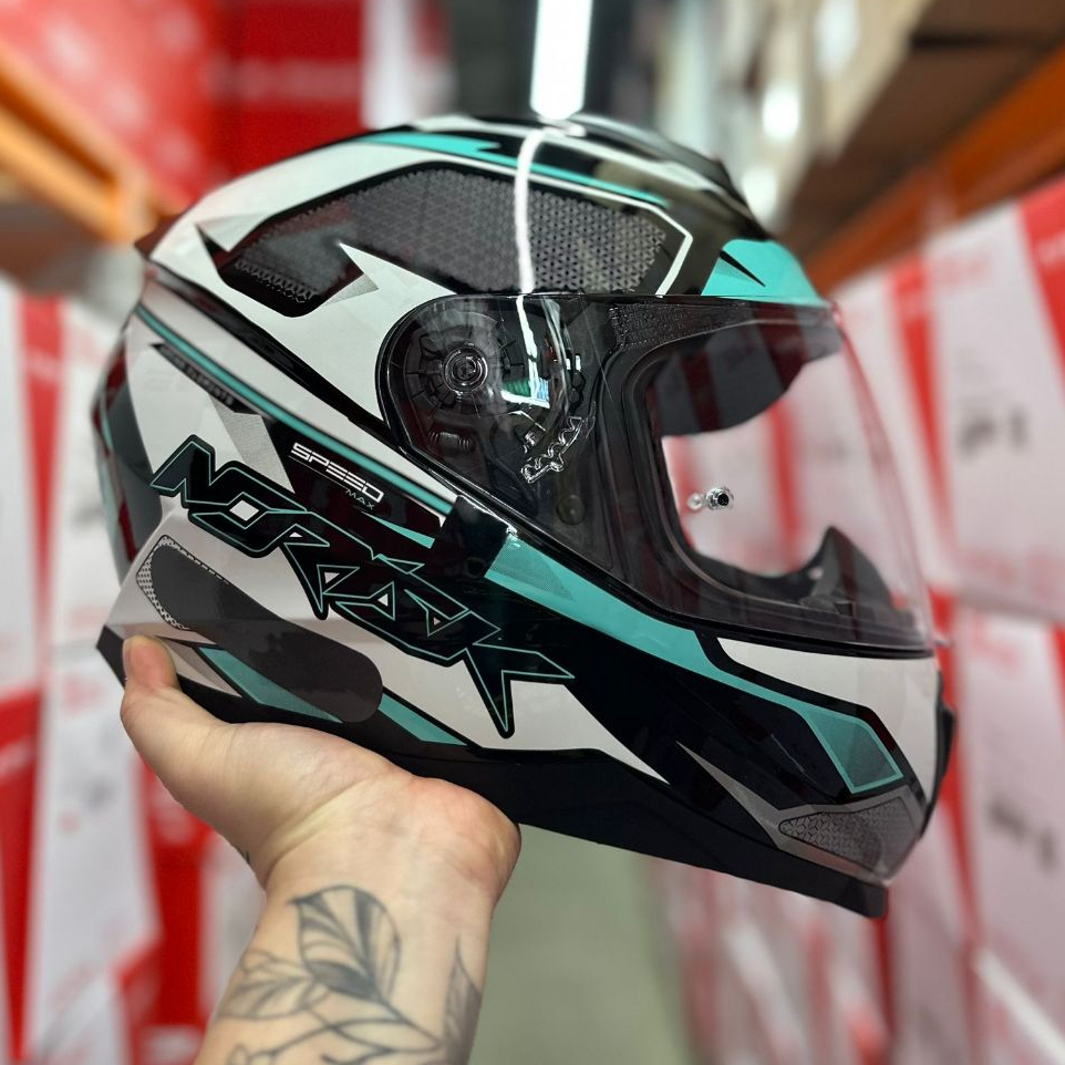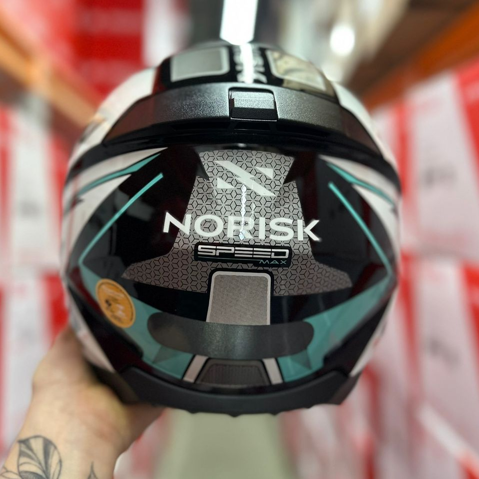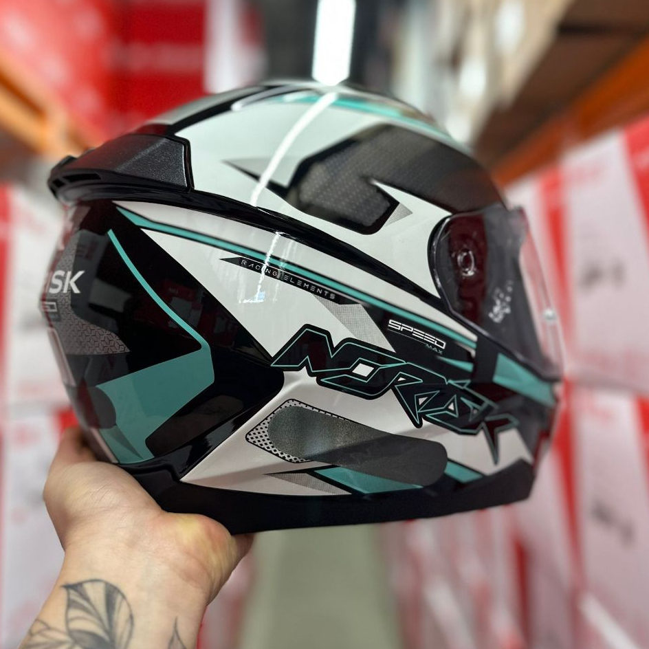 CAPACETE BARATO ENTRADA NORISK RAZOR SPEEDMAX ESPORTIVO MASCULINO PRETO VERDE E BRANCO + BRINDE TOP