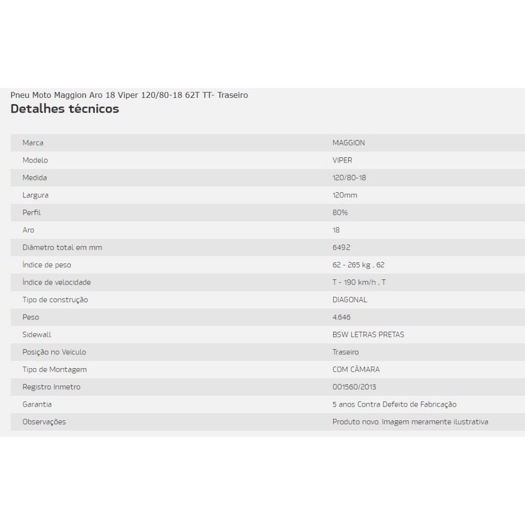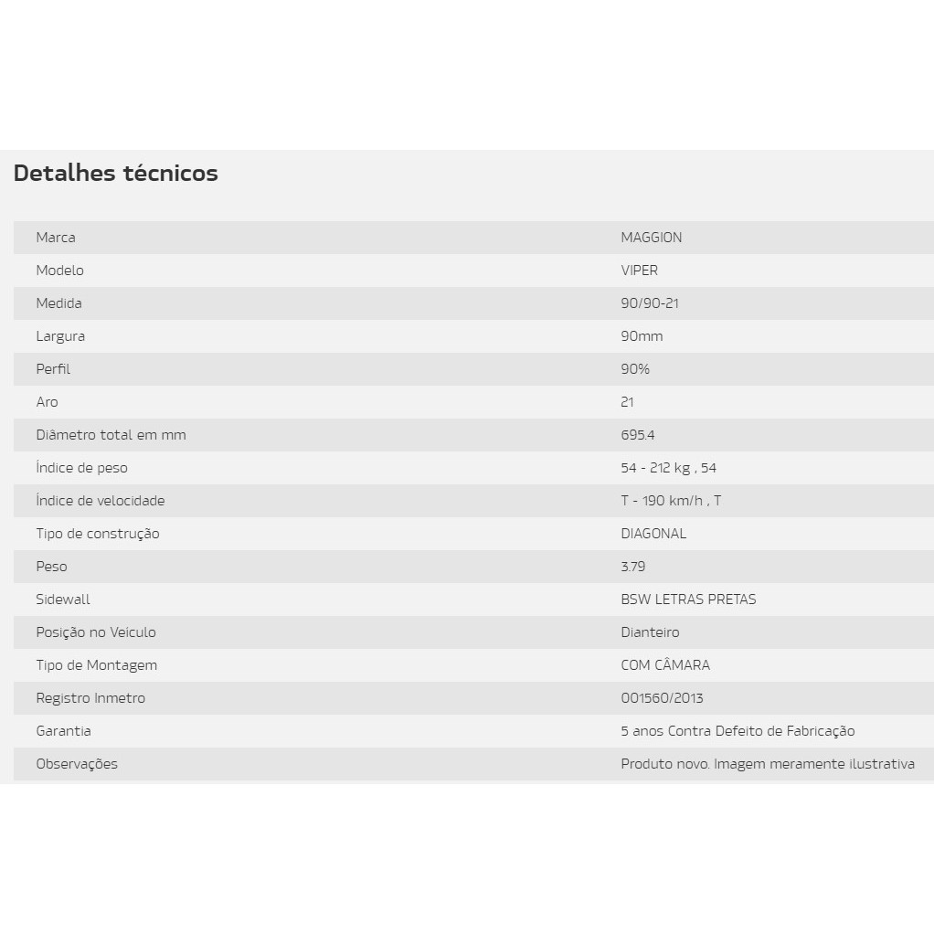 PAR DE PNEU MAGGION VIPER 120/80-18 + 90/90-21 DIANTEIRO TRASEIRO NOVO