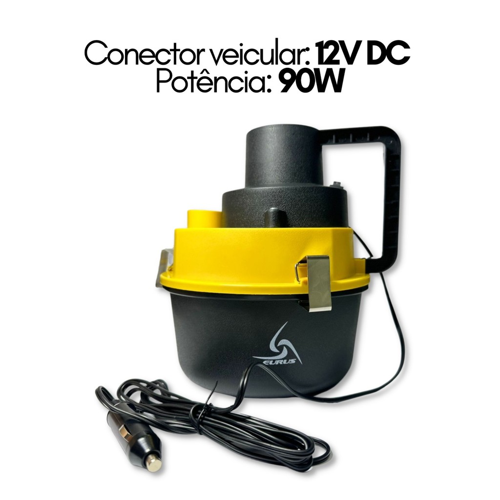 Aspirador De Pó E Liquido Automotivo Portátil Turbo Potente Eurus 90w 12v