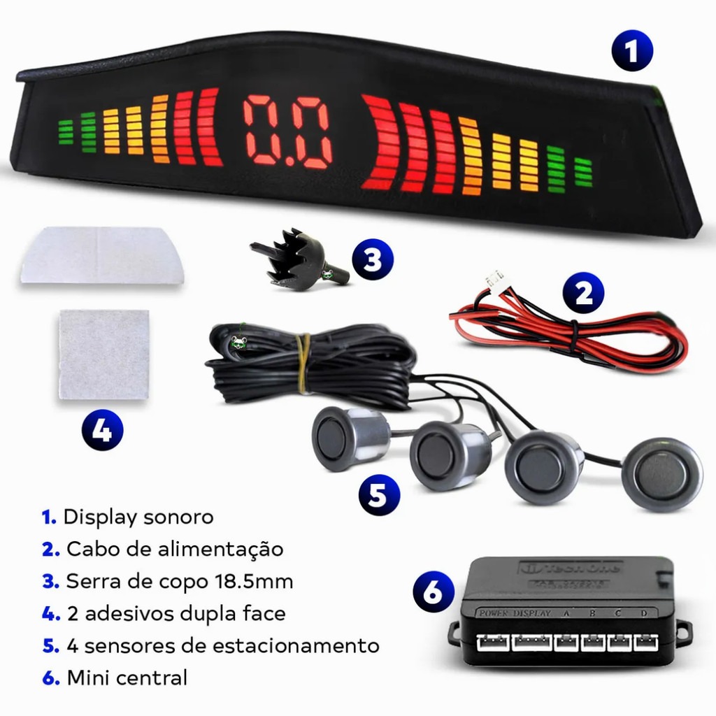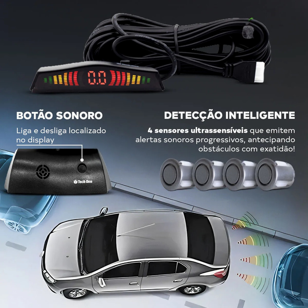 Sensor De Estacionamento Prime Tech One 4 Sensores Grafite