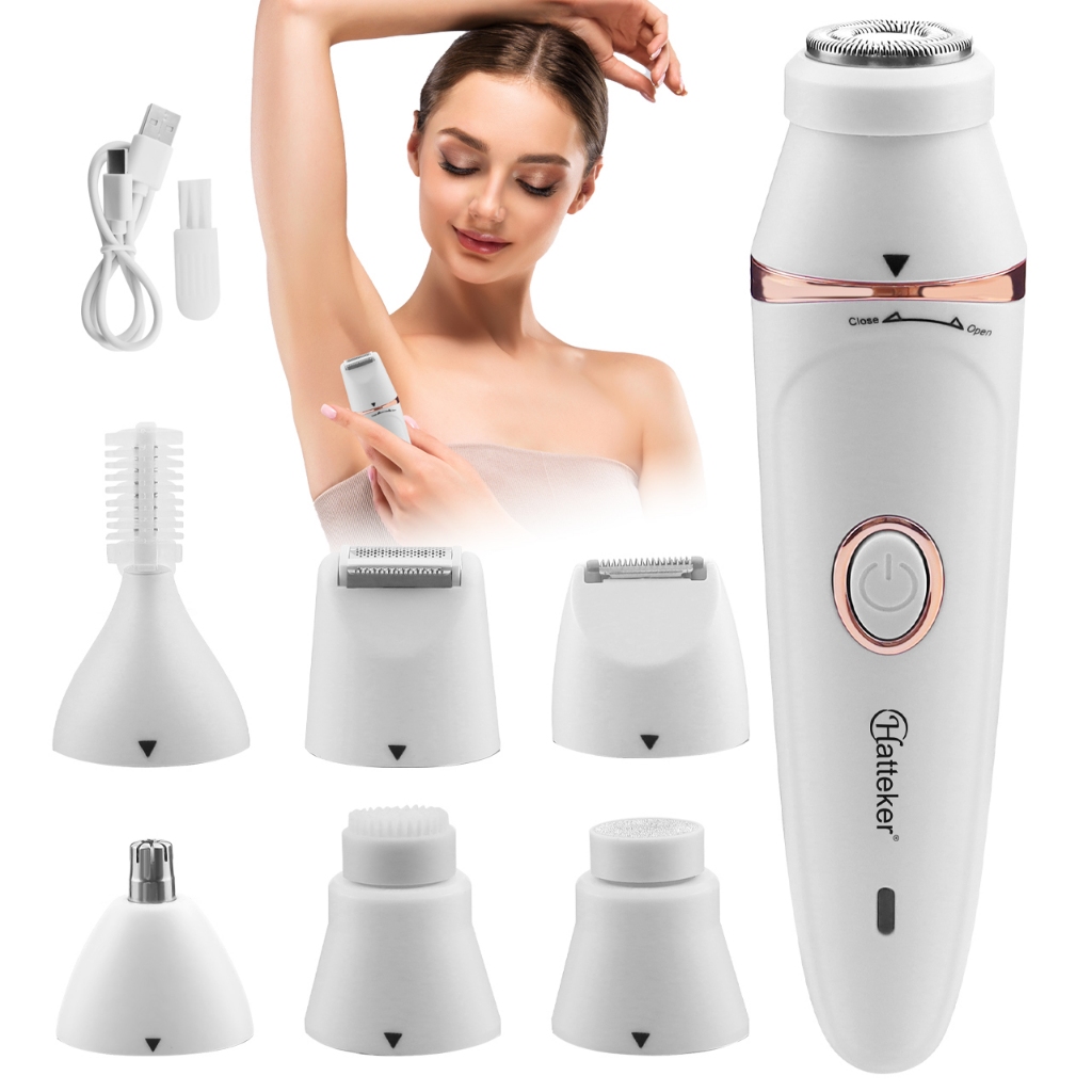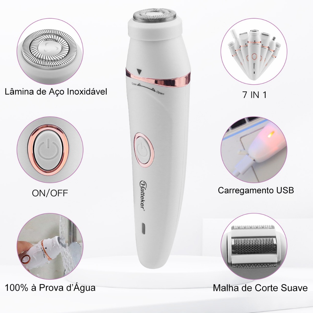 Depilador 7 em 1 Recarregável à Prova d’Água IPX5 com Acessórios para Rosto e Corpo USB,BivoltHT-590