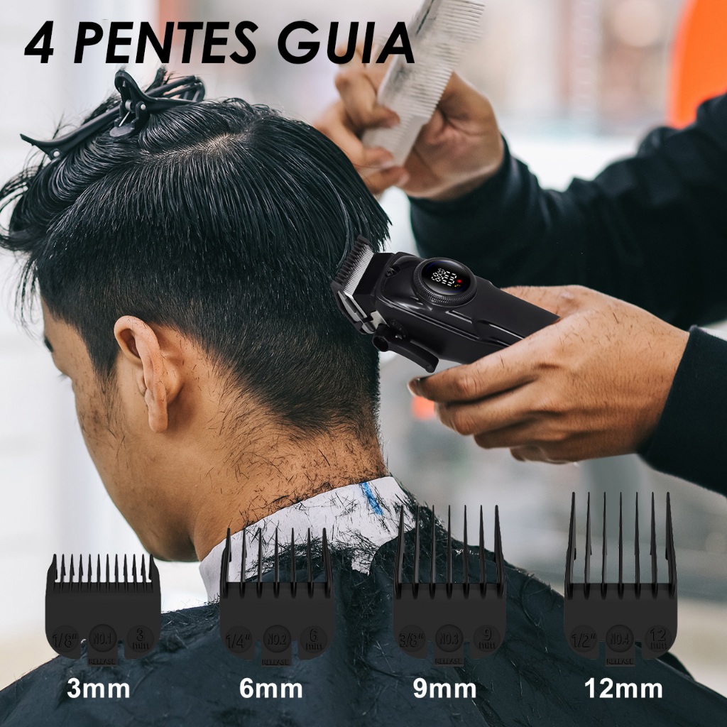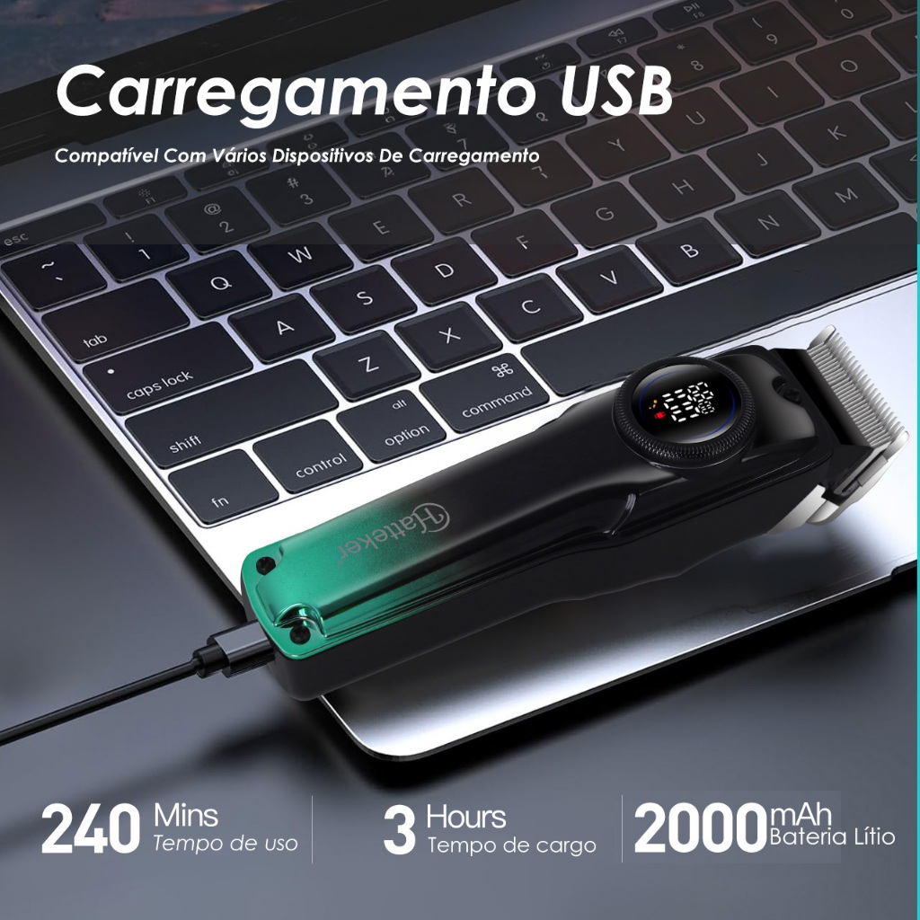 Máquina de Corte Motor 7000 RPM 2000 mAh 4 Pentes Tempo de Uso 240 min Hatteker HT-6031