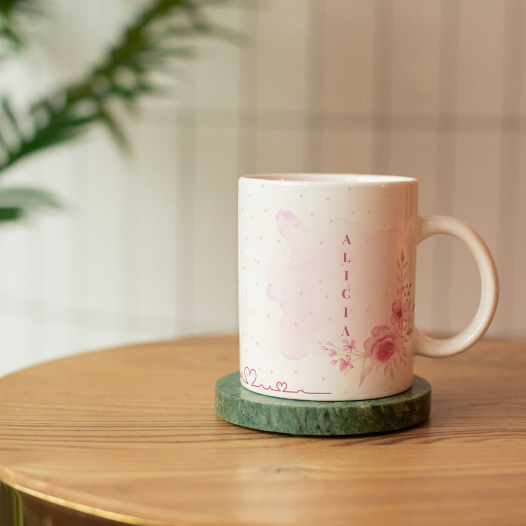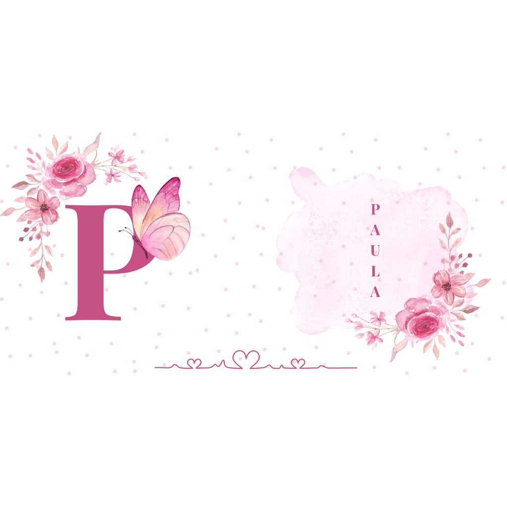 Caneca 325ml Personalizada com Nome e Letra Inicial Floral Cerâmica Presente Criativo Frete Rápido
