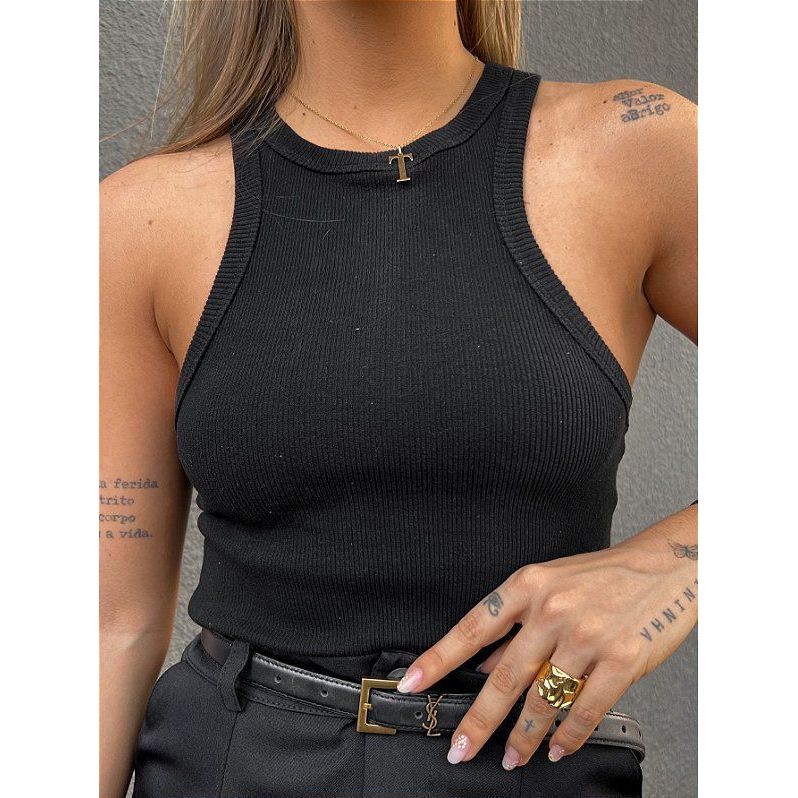Regata Feminina Canelada Justa Básica Sem Manga Algodão Confortável