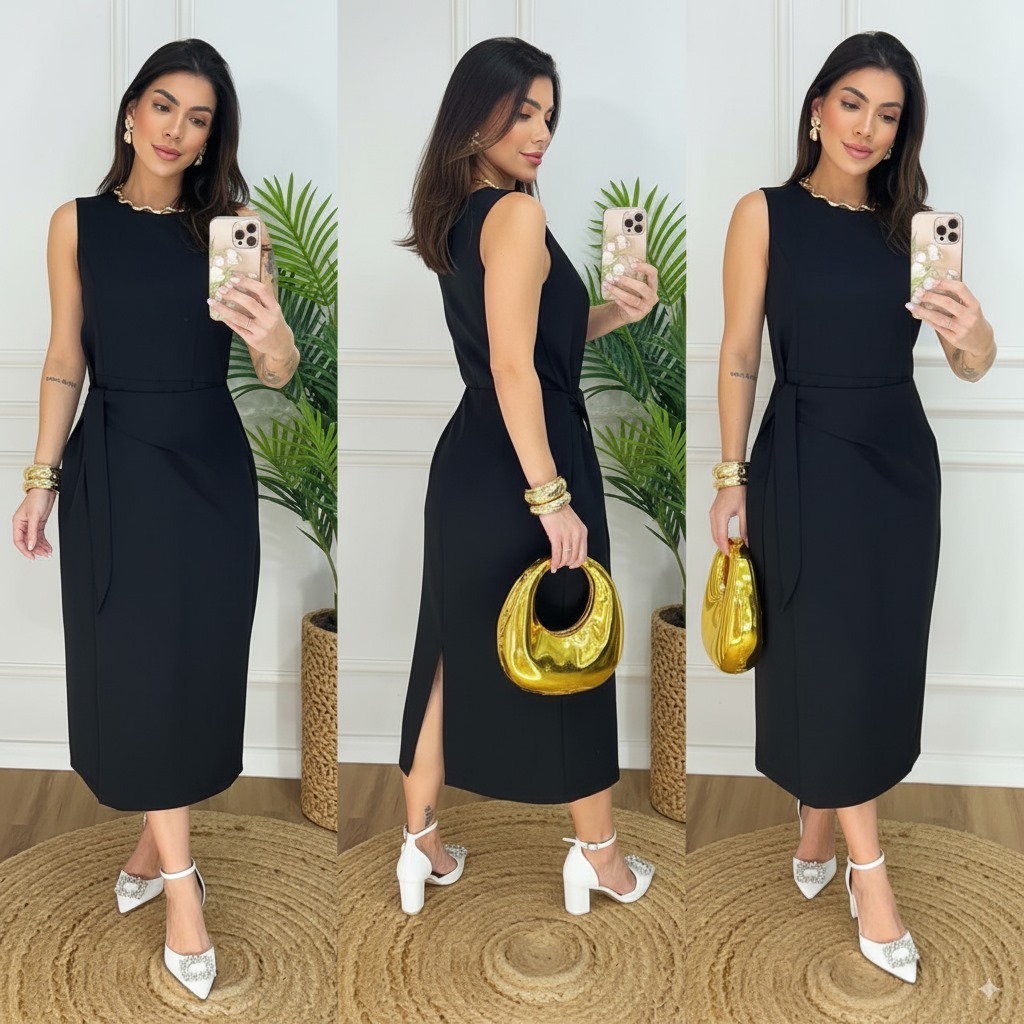 Vestido Midí Feminino Elegante de Alfaiataria com laço fenda na parte de trás