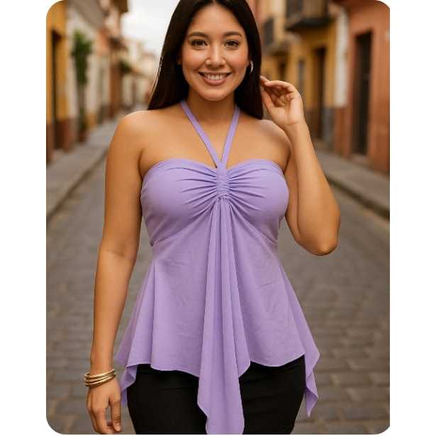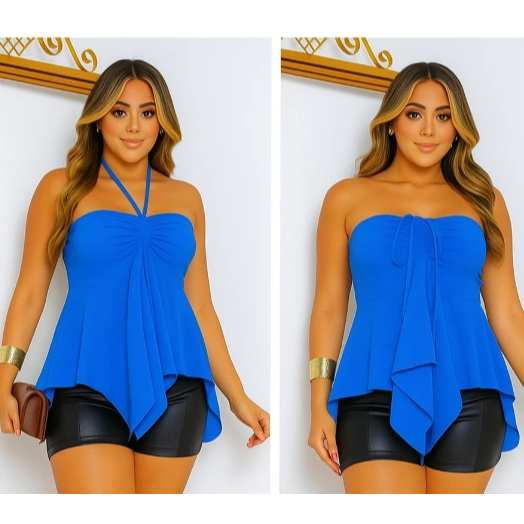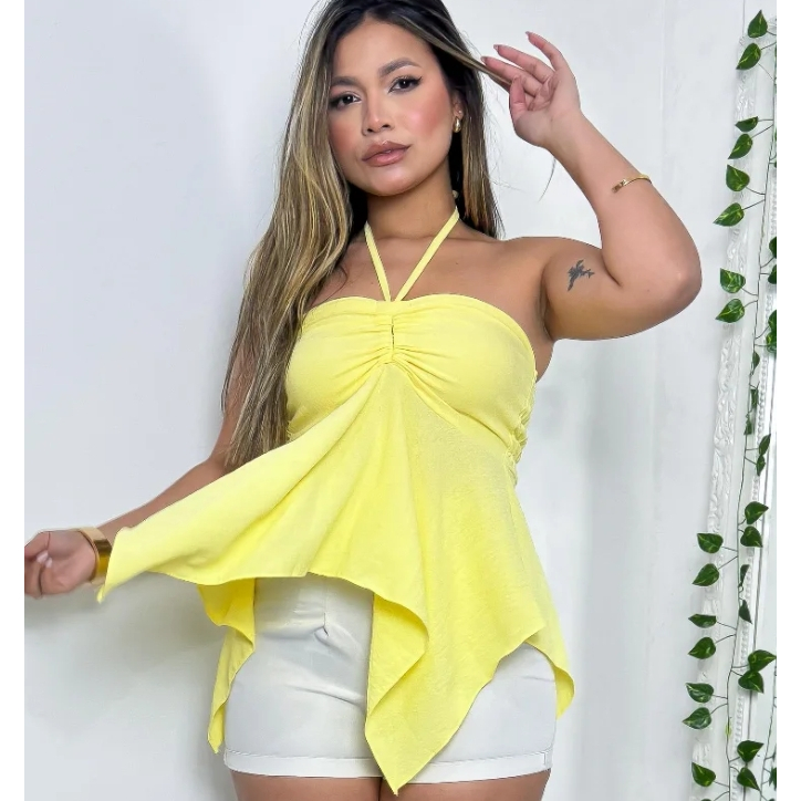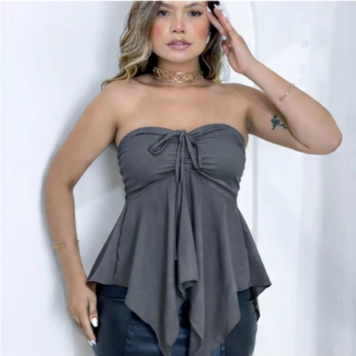 Blusa Bata Solta com Amarração Frontal Ajustável tem Elastex nas costas
