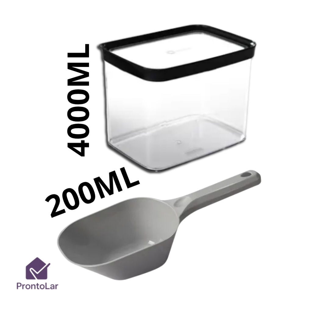 Pote Para Ração 4 Litros Hermético + Pá Medidora 200 ml