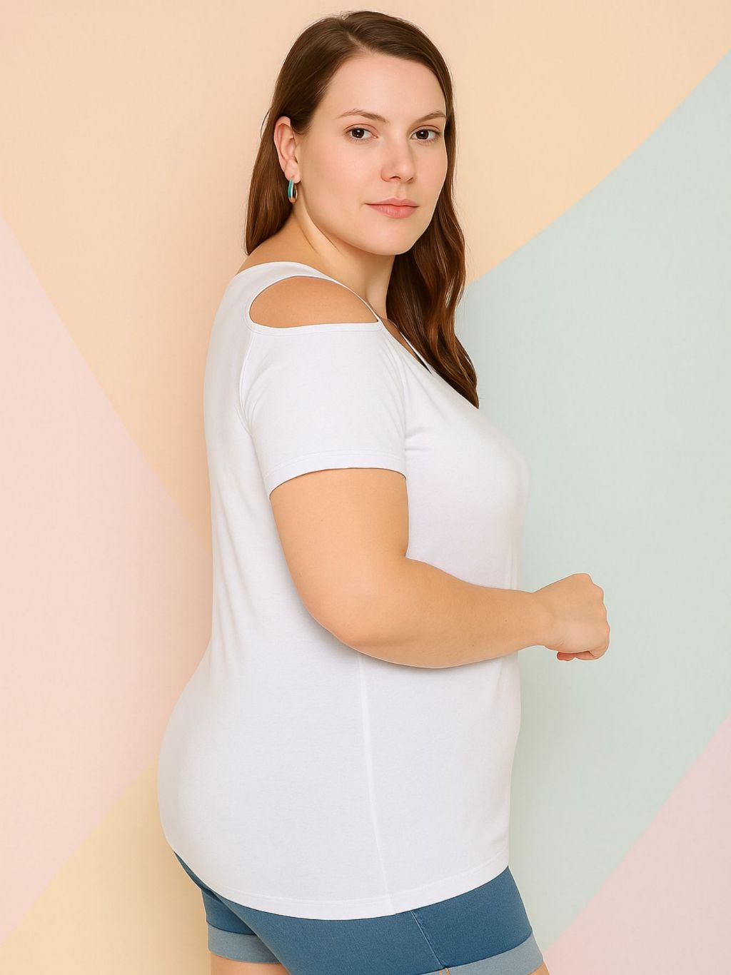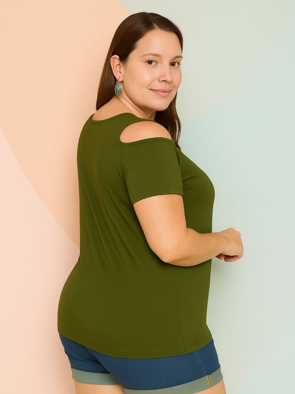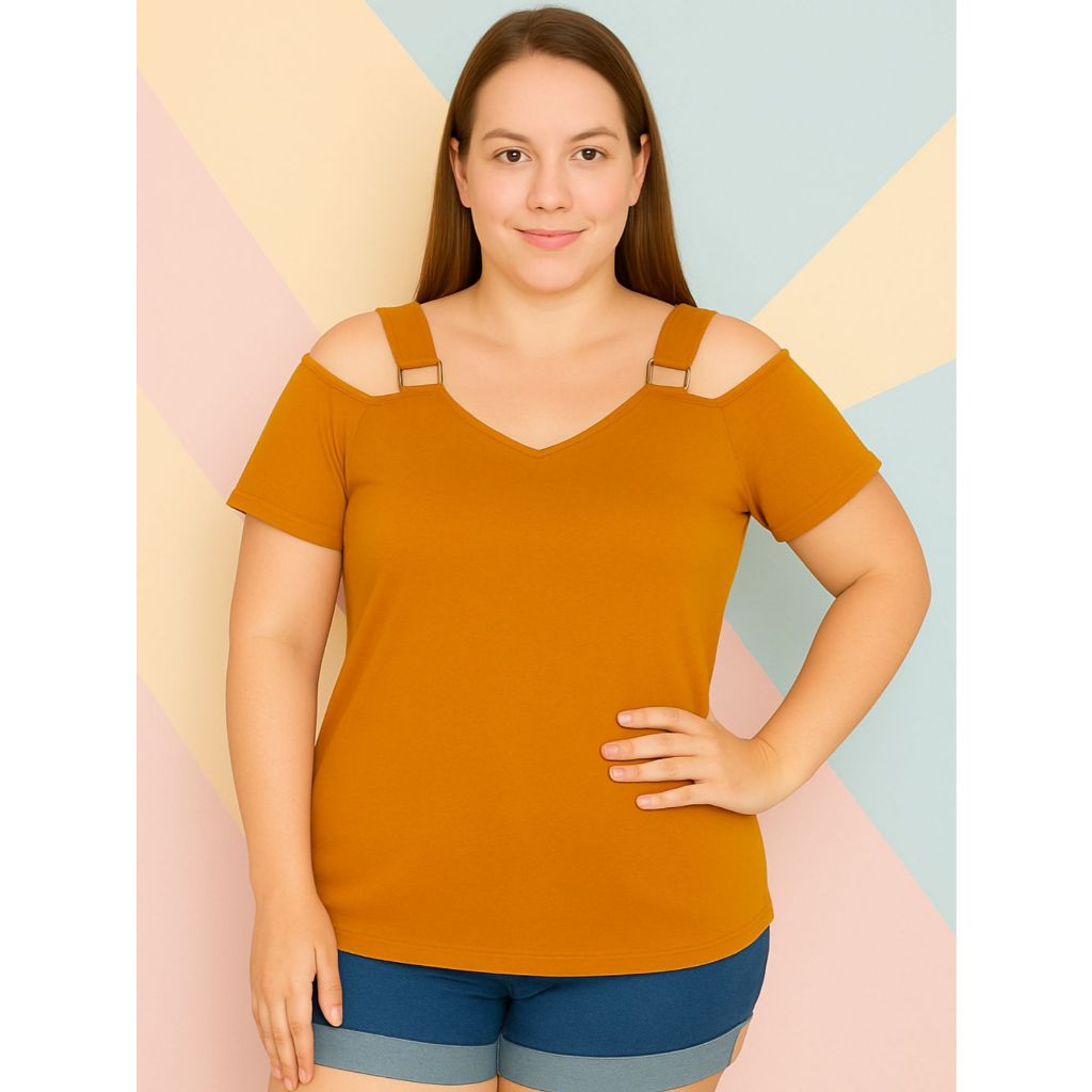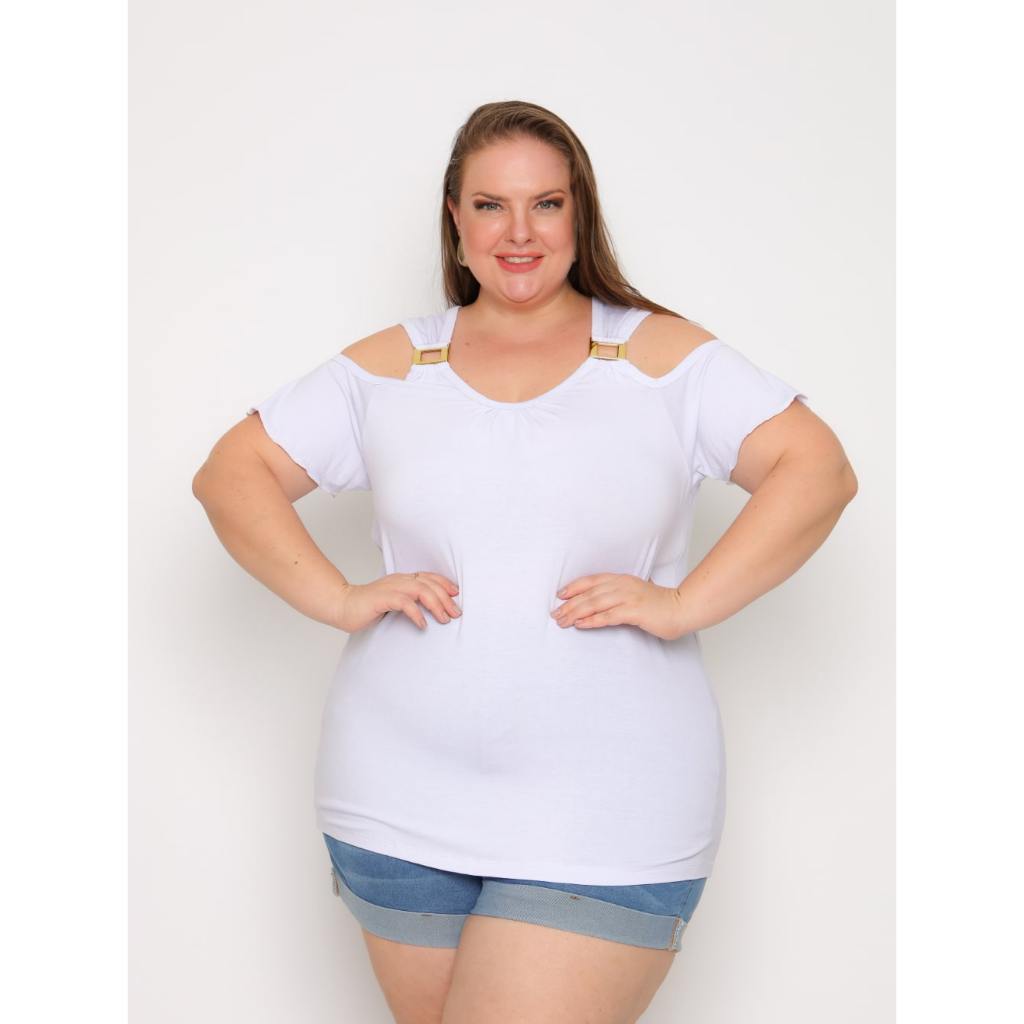 CLICK MODAS Blusa feminina Plus Size ombro vazado com fivelas douradas conforto e glamour