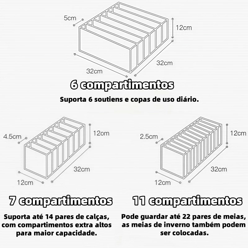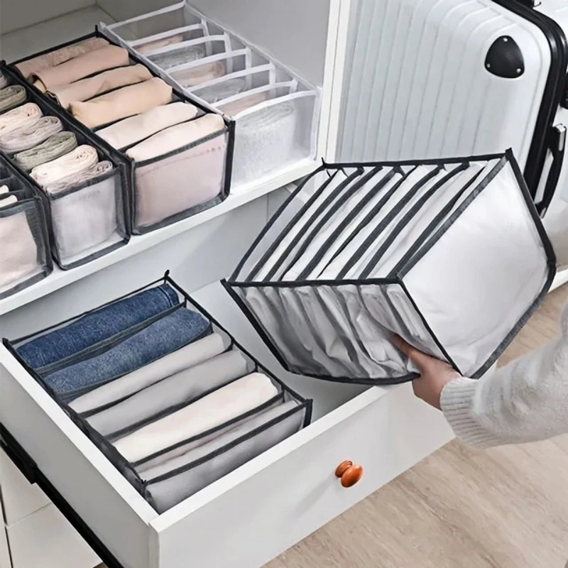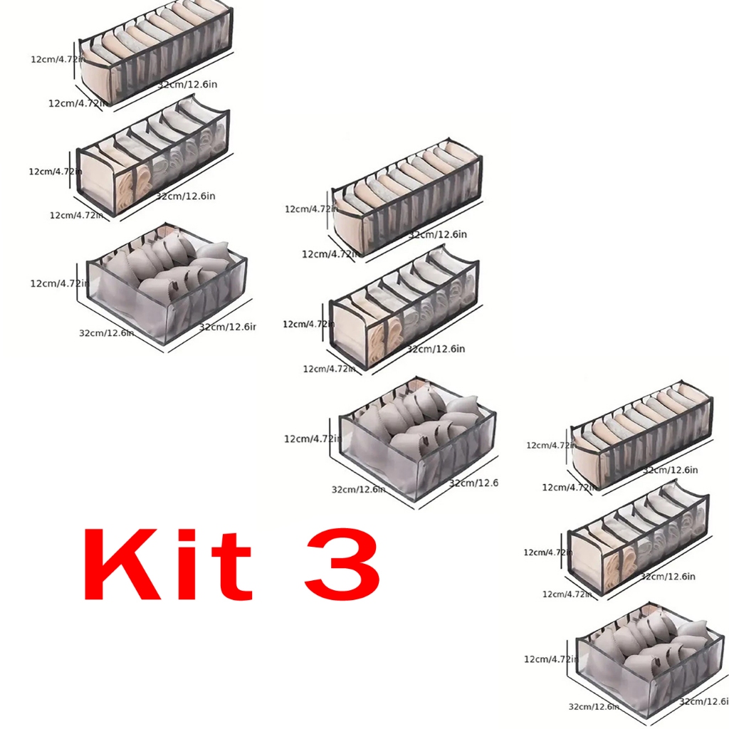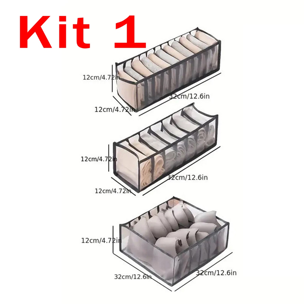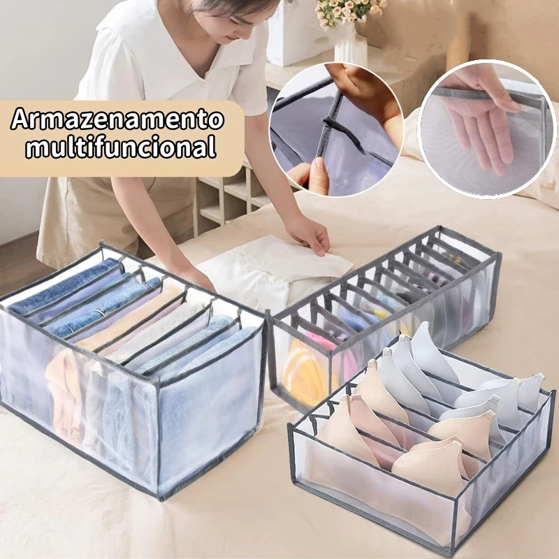 Kit 3 Organizadores De Gaveta-Caixa De Armazenamento De Malha Doméstica Para Meias Bolsa Dividida Guarda
