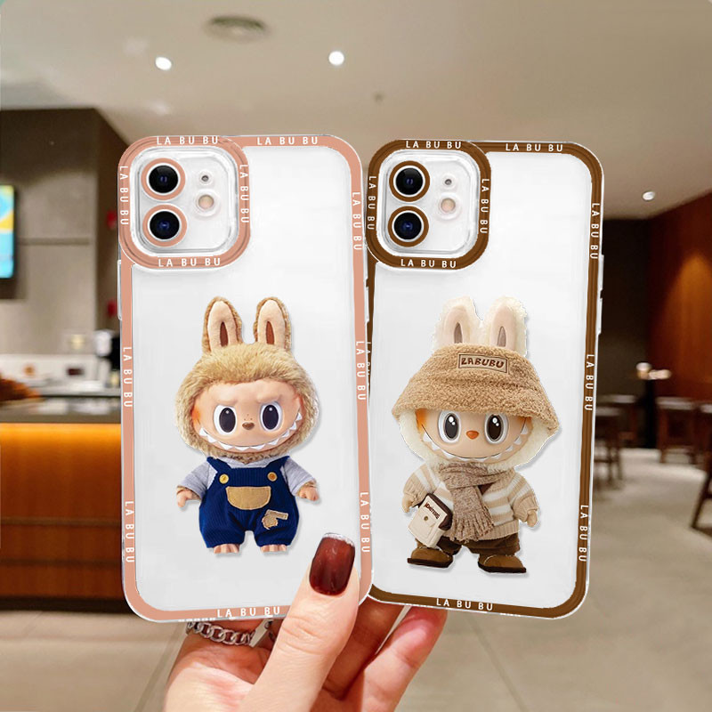Capa Transparente Anti-Impacto Labubu Para iPhone xr max 7 11 12 13 14 15 16 pro plus