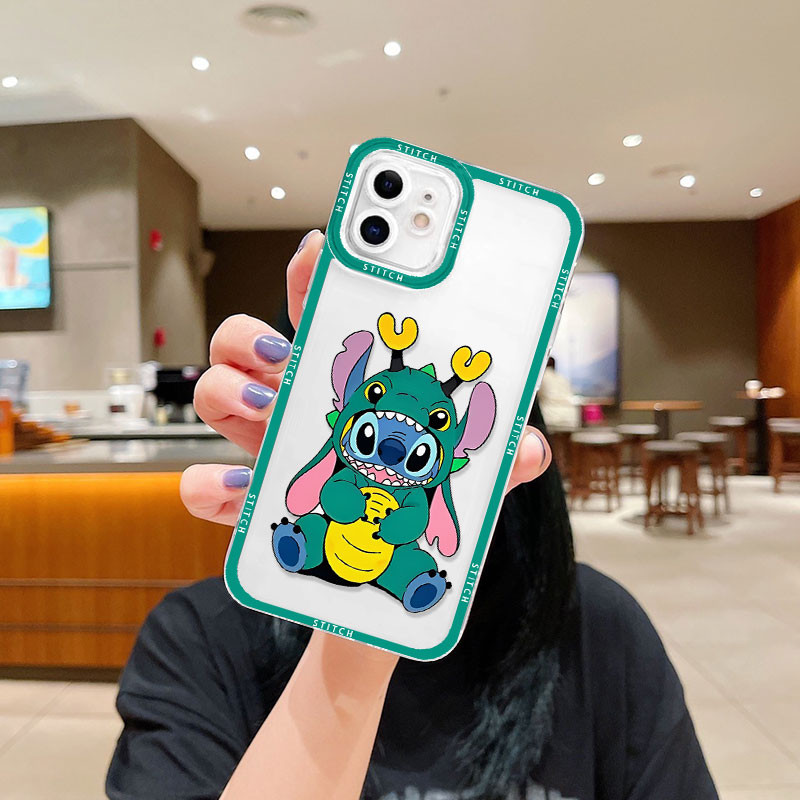 Capa Transparente Anti-Impacto Stitch Para iPhone xr max 7 11 12 13 14 15 16 pro plus case