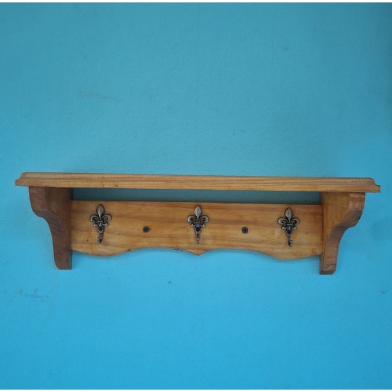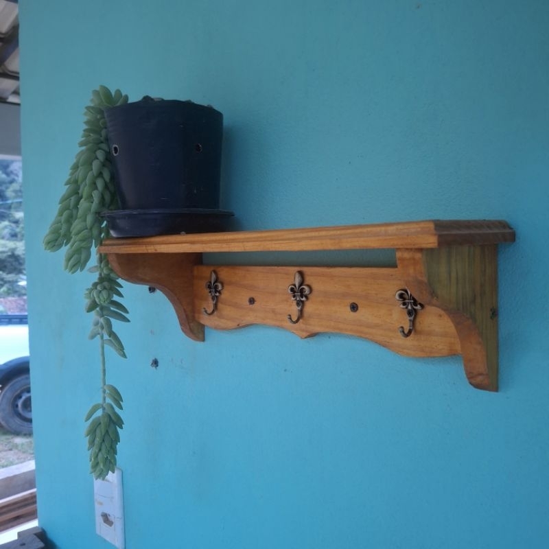 prateleira cabideiro nicho decorativo madeira demoliçao com ganchos
