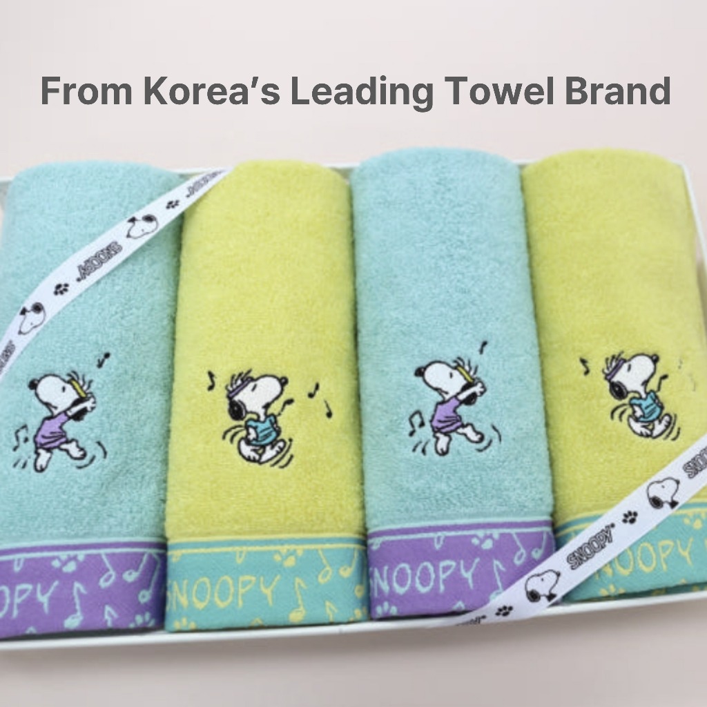 Toalha Songwol Snoopy 40x80cm | 100 % Algodão Penteado Certificado OEKO-TEX Menta/Amarelo