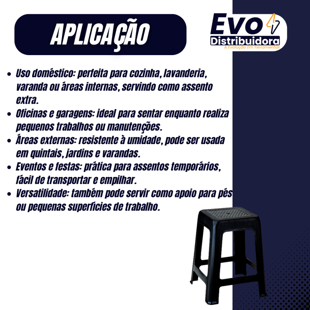 Banqueta De Plástico Reforçada Preta Banco Adulto Kit Multiuso Suporta Até 120kg