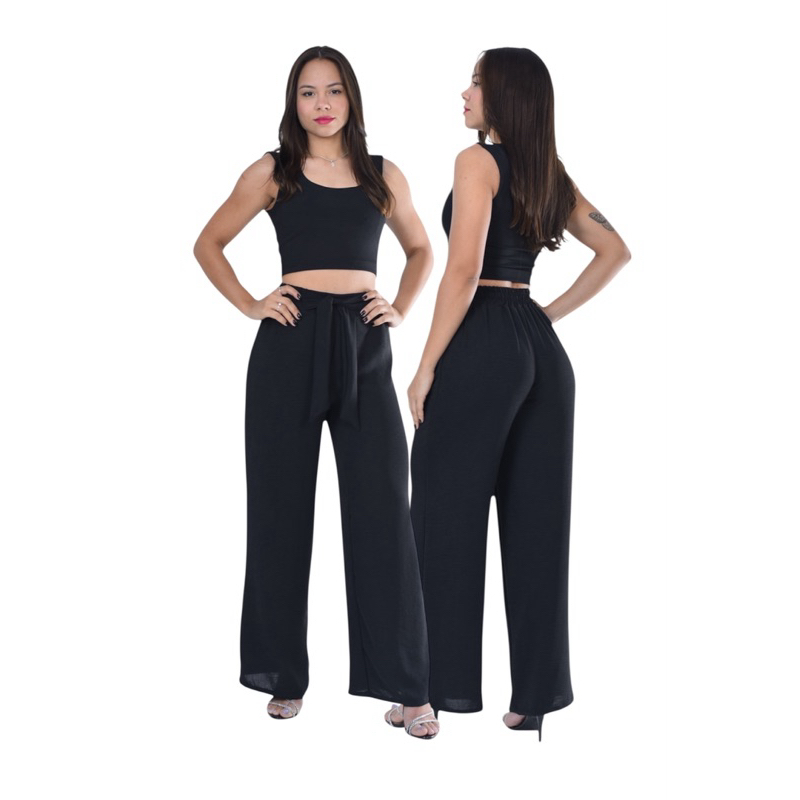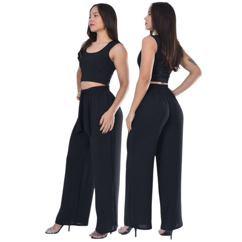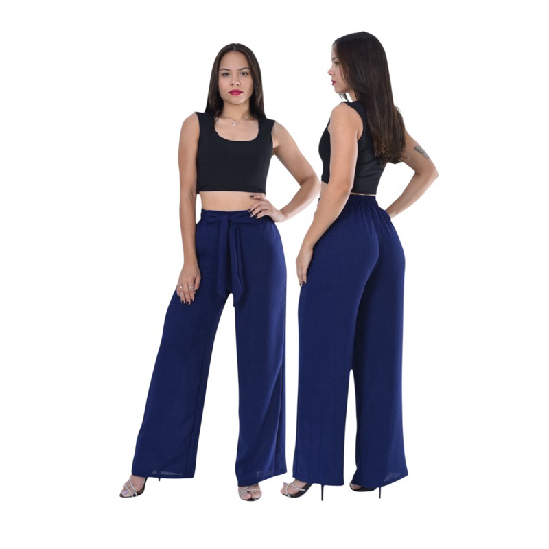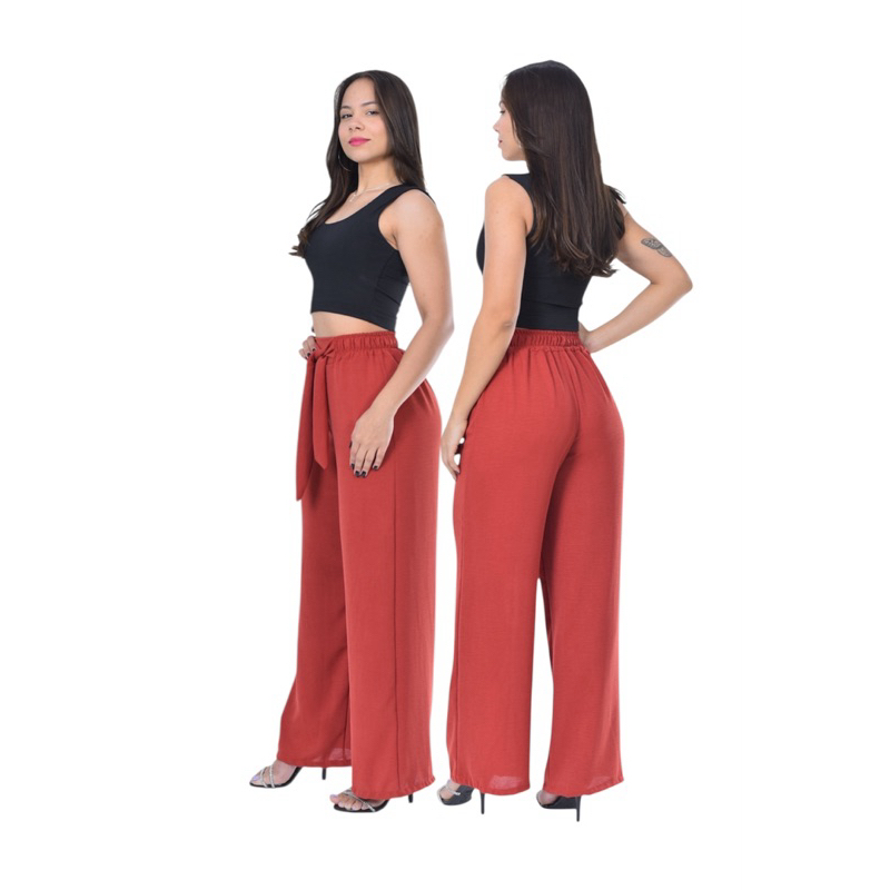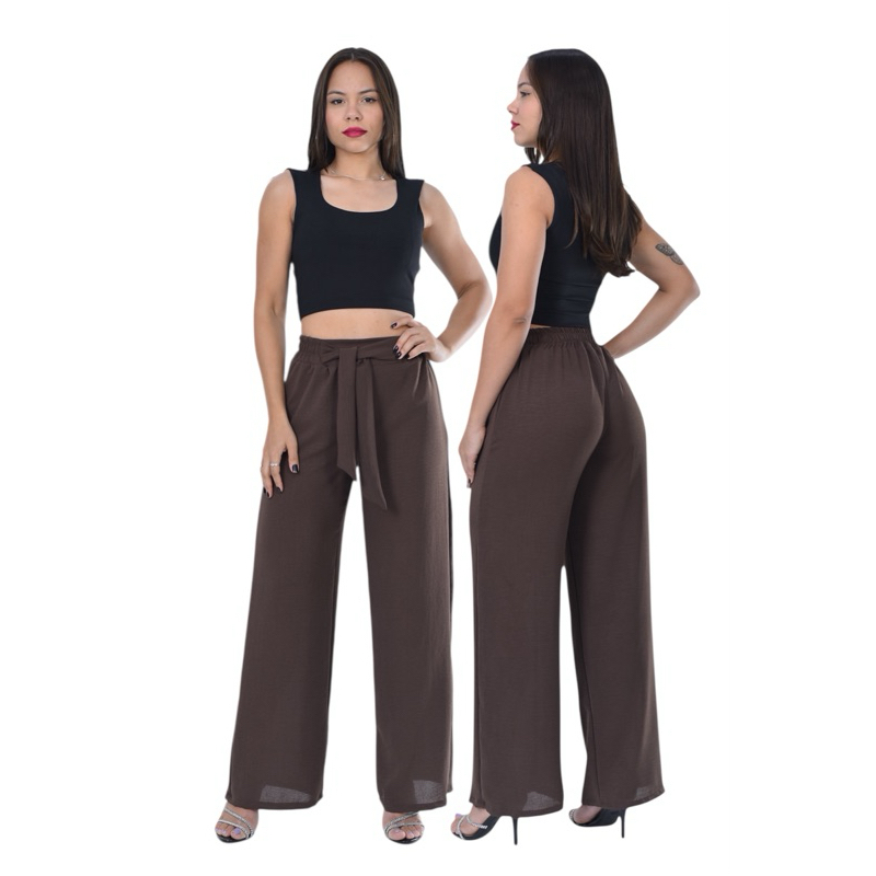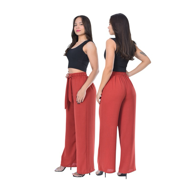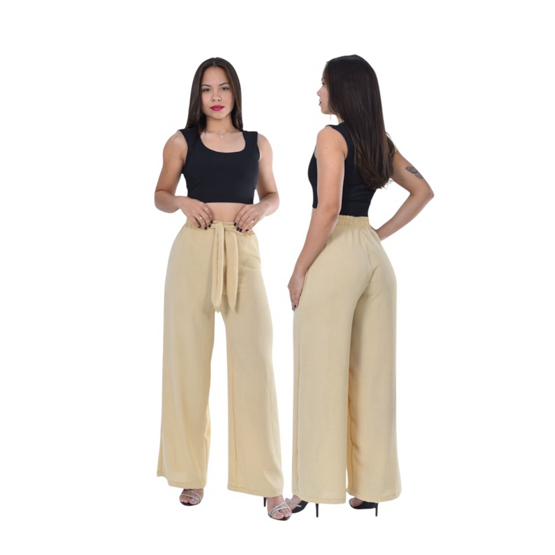 Calça Feminina Pantalona cintura Alta com Elástico core de Verão