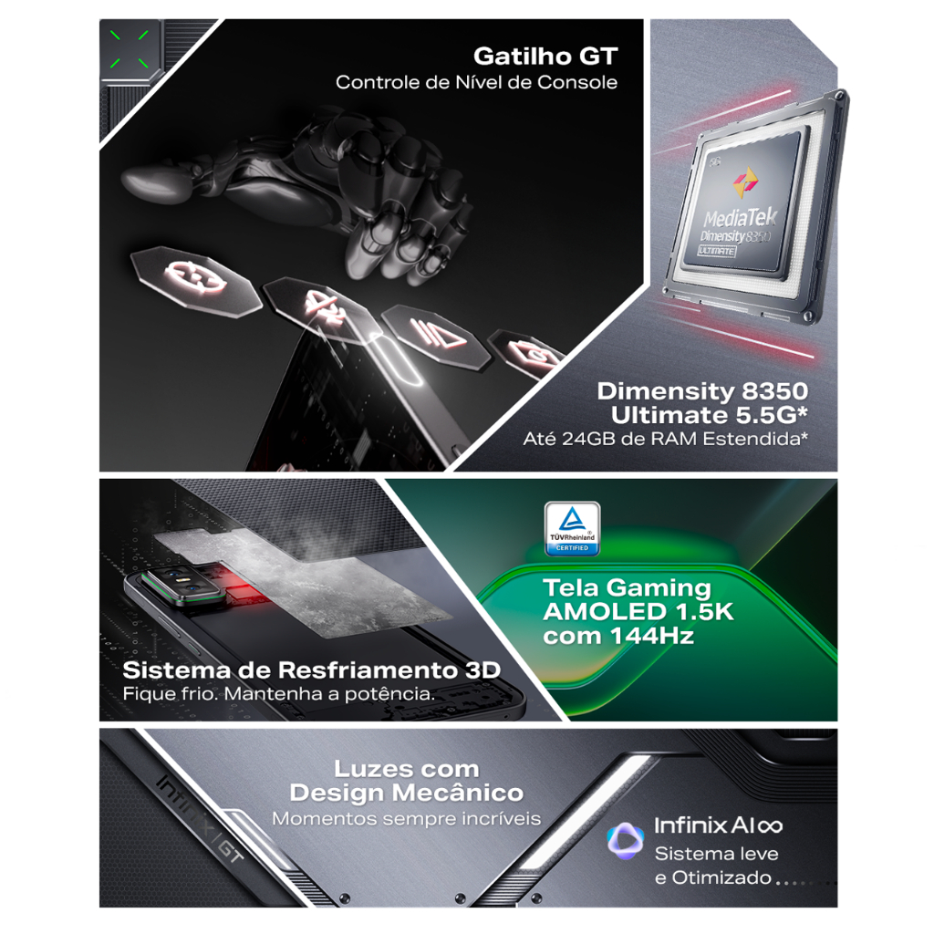 Infinix GT 30 PRO 5G, 512GB + 12GB RAM, Processador Dimensity 8350 Ultimate, Versão Global, Câmera 108MP, Tela AMOLED