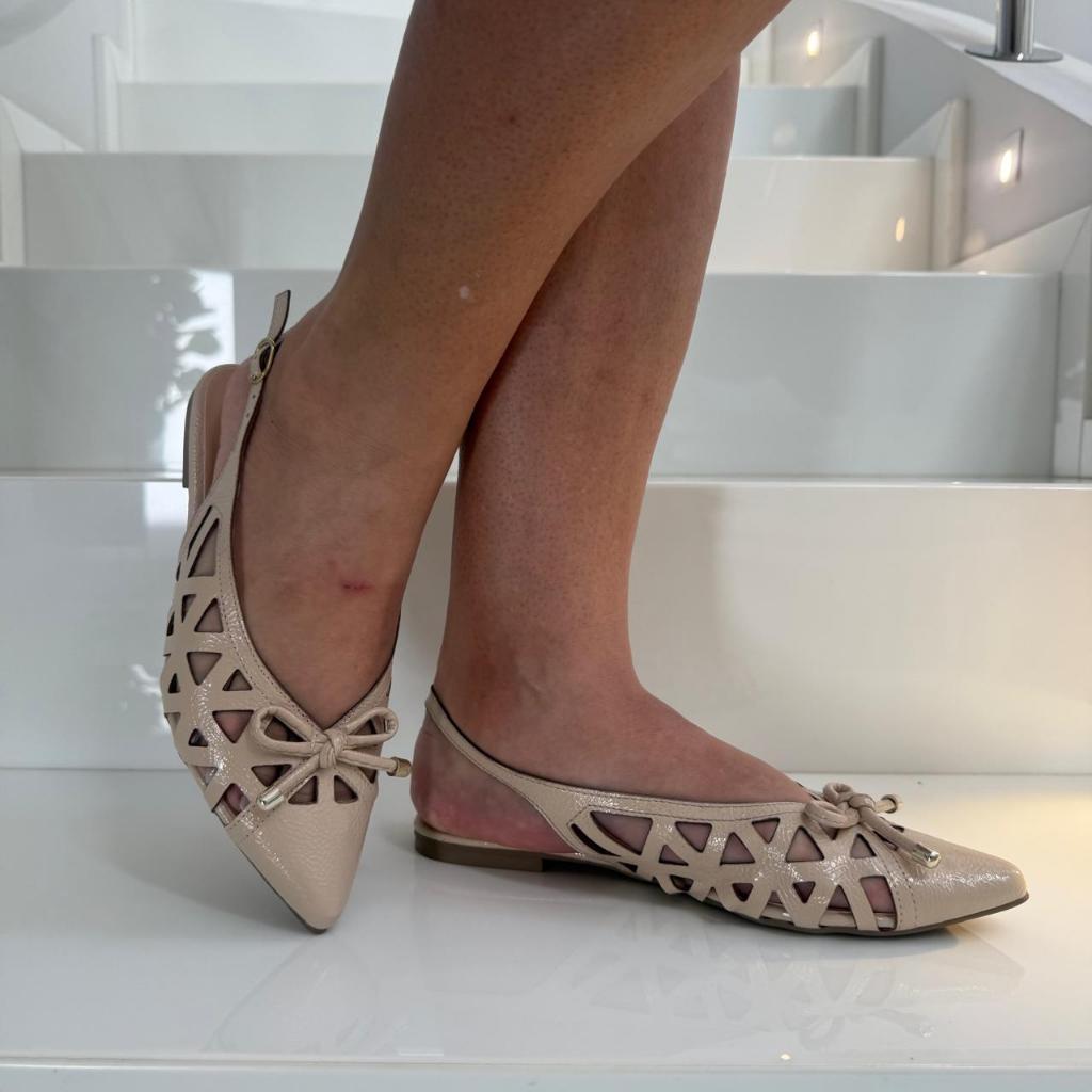 Sapato Sapatilha Slingback vazado á Laser Feminina Confortavel