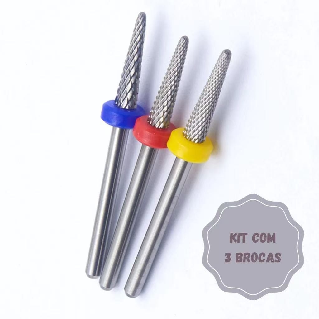 Kit 3 Pçs Broca Tungstênio Acabamento Remoção Unha Natural