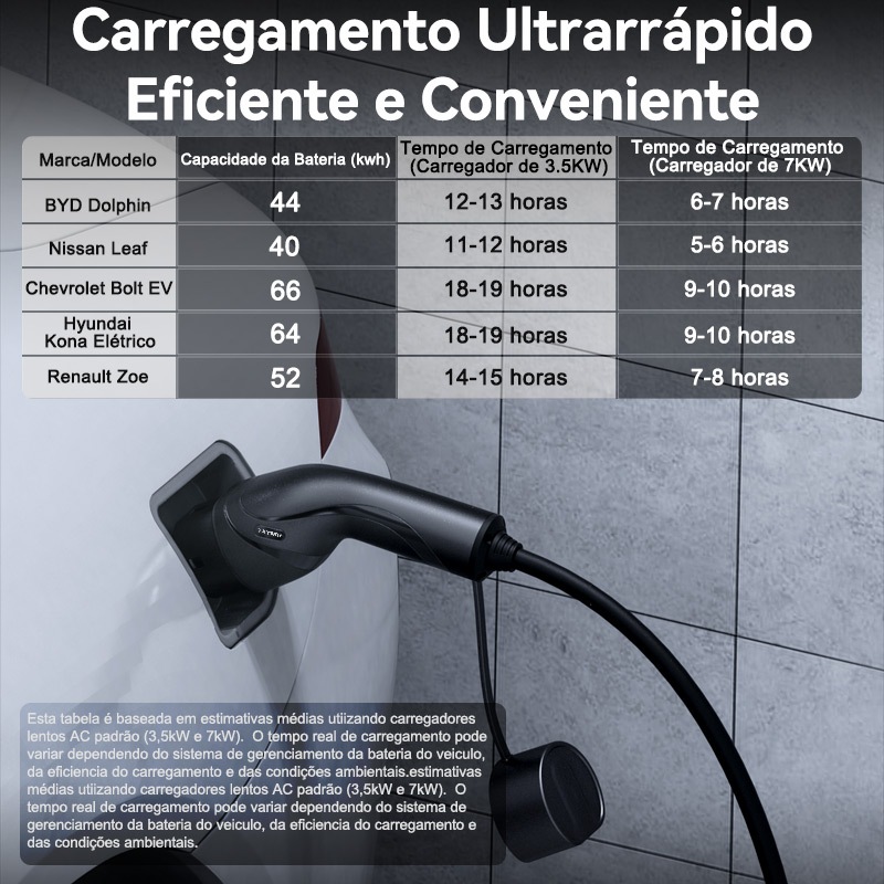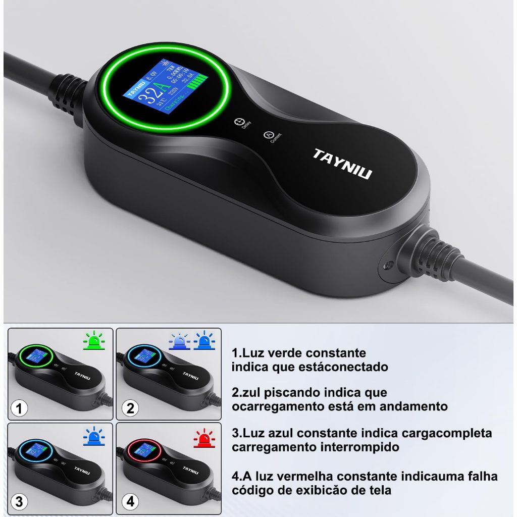 TAYNIU Carregador EV Inteligente 7KW com Controle via App e Registro de Carga Compatível com BYD Dolphin Mini