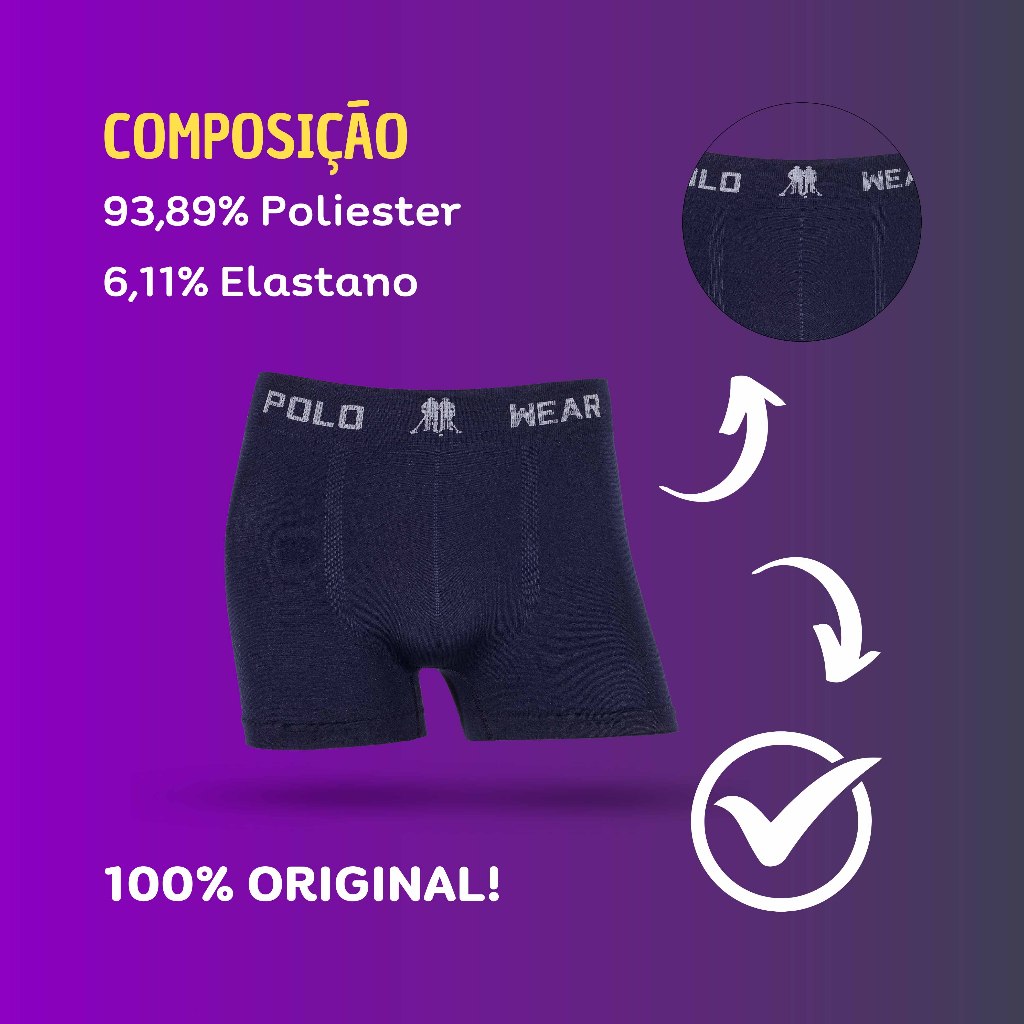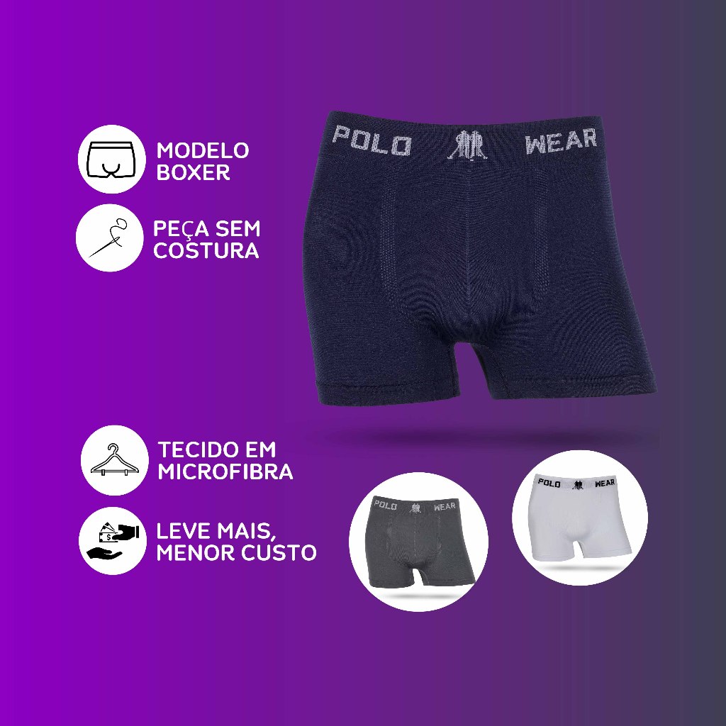 Kit 7 ou 15 cuecas Original Polo Wear boxer microfibra