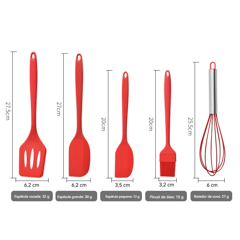 Kit 5 Pecas Utensilios de Silicone Confeitaria Espatula Pincel de Azeite Batedeira Colher de Cozinhar