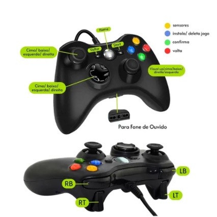 Controle De Xbox 360 Com Fio Para Video Game