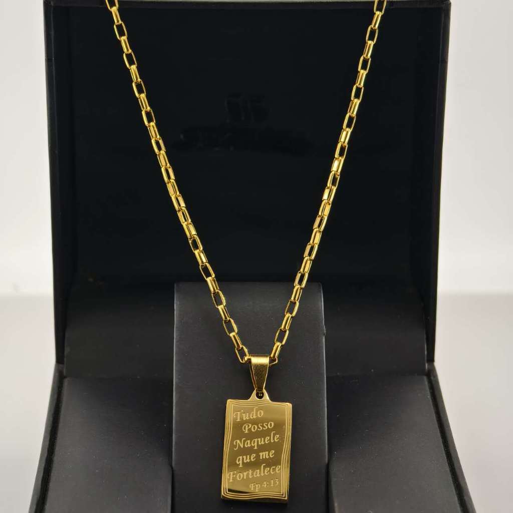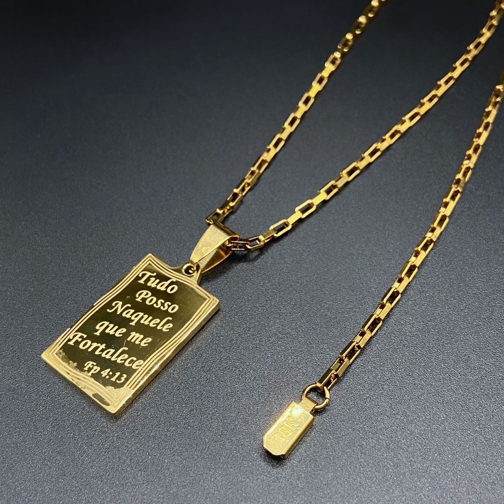 Corrente masculina cadeia de treliça aço inoxidável a 18k,Colar Fina com pingente de Tudo Poços