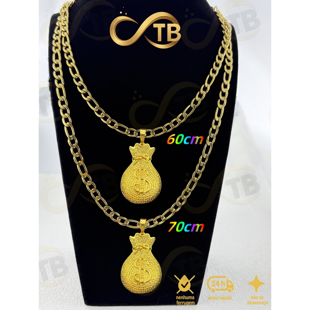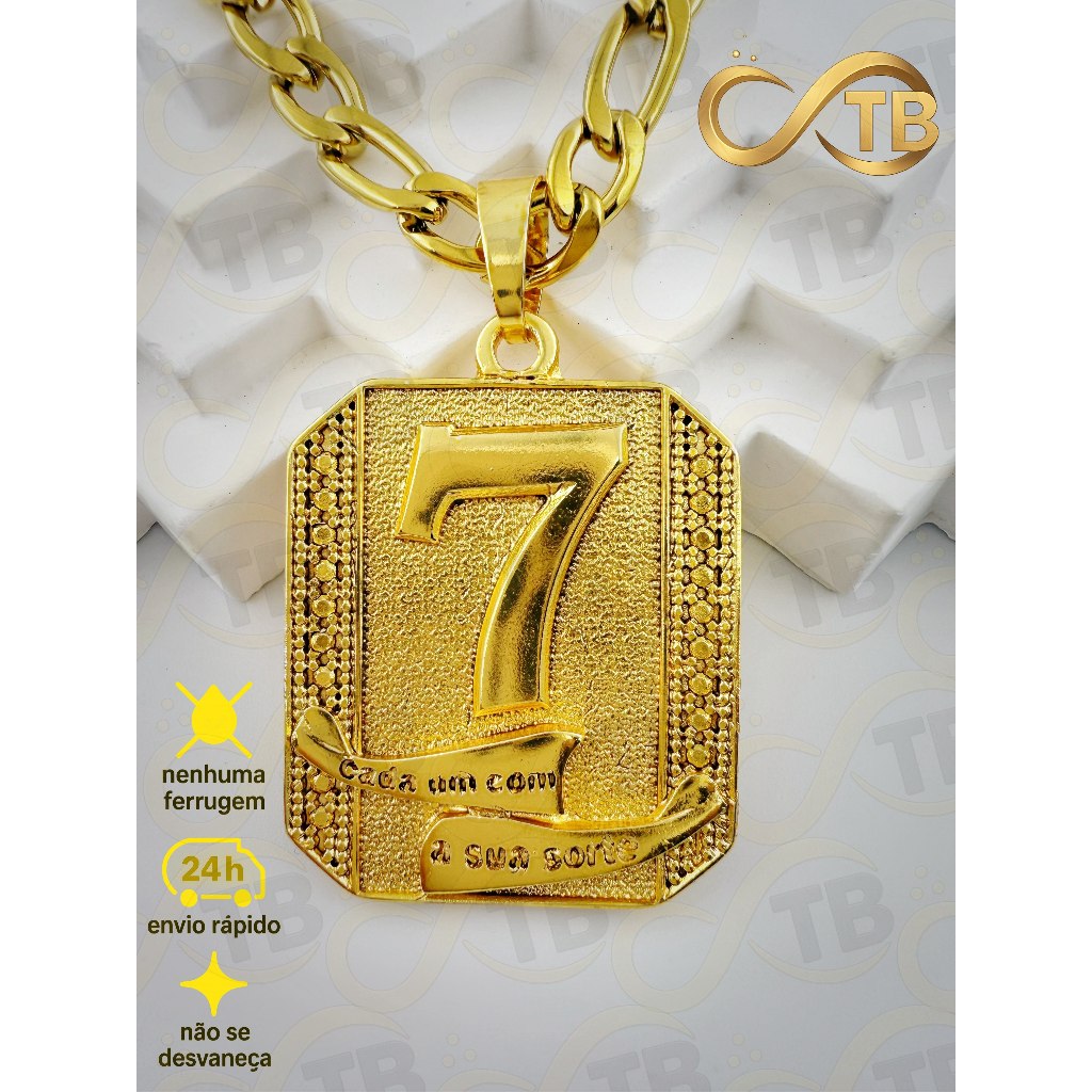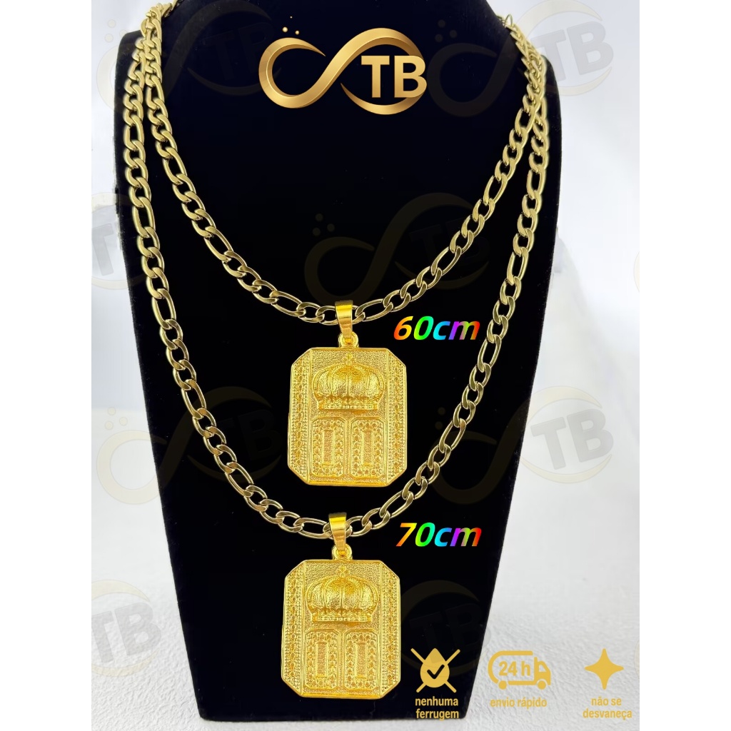 TB Colar Cordão de Moeda AntigaBanhado a Ouro 18k.NK3/1 Pingente Dado com Coroa - de Poder e Prestí