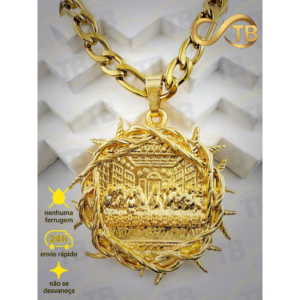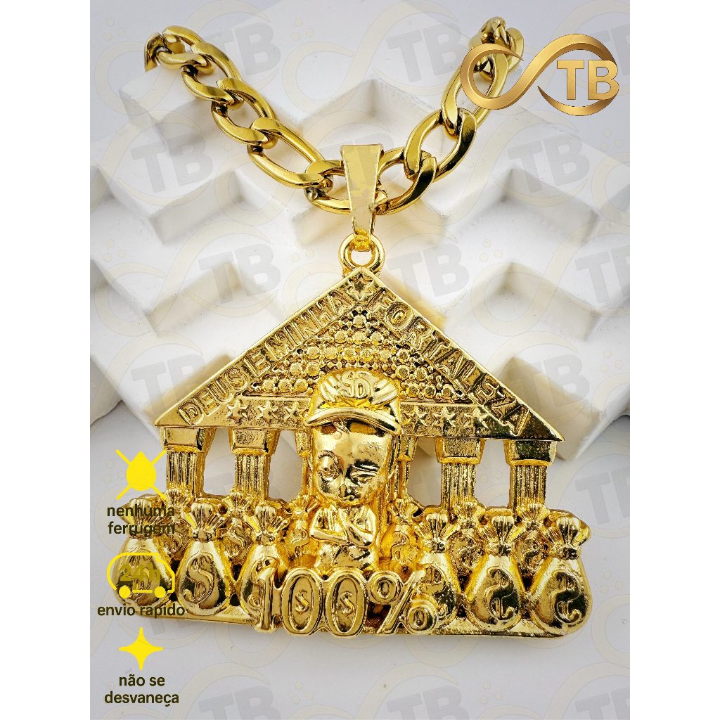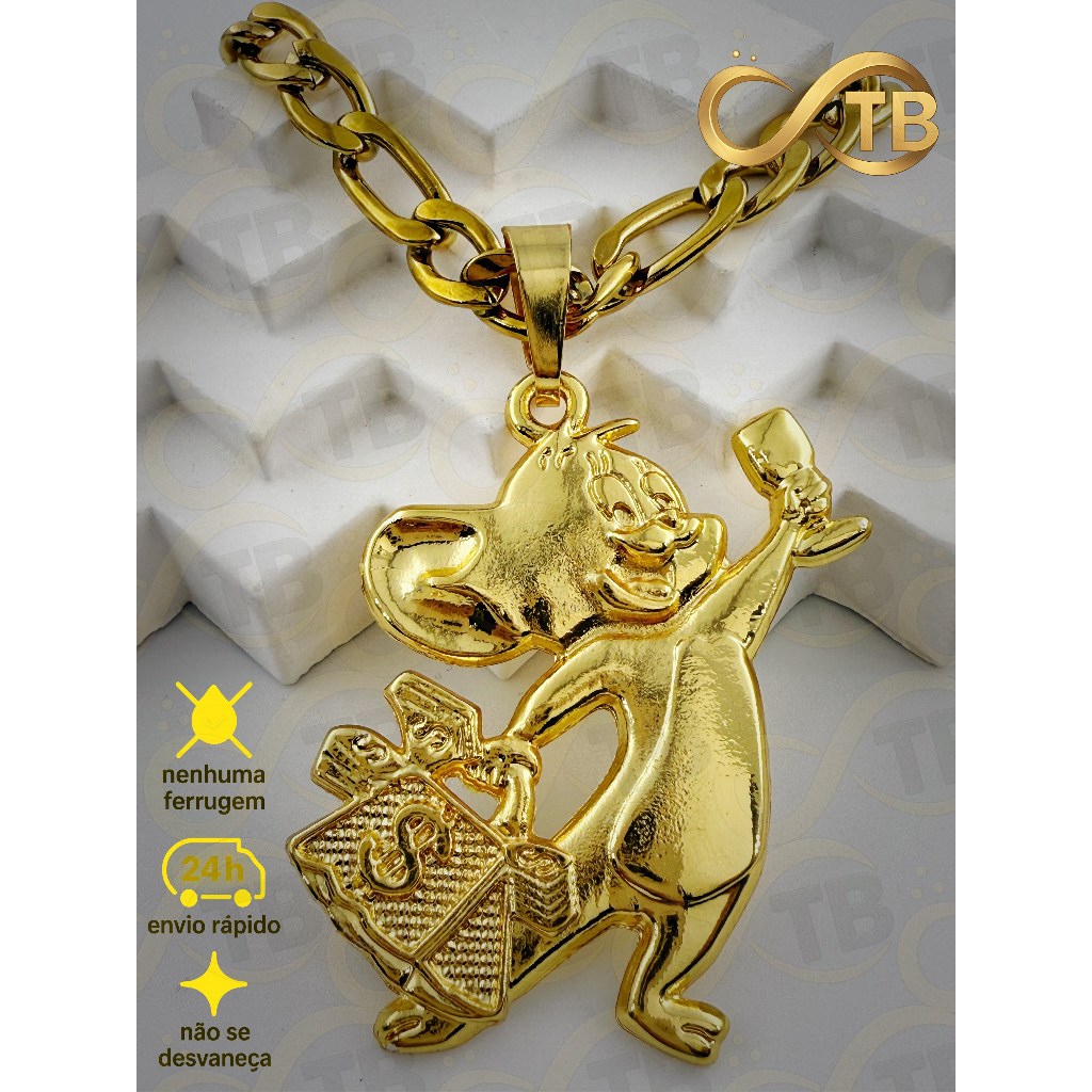 TB Colar Cordão de Moeda AntigaBanhado a Ouro 18k.NK3/1 Pingente Dado com Coroa - de Poder e Prestí