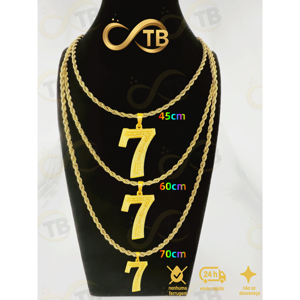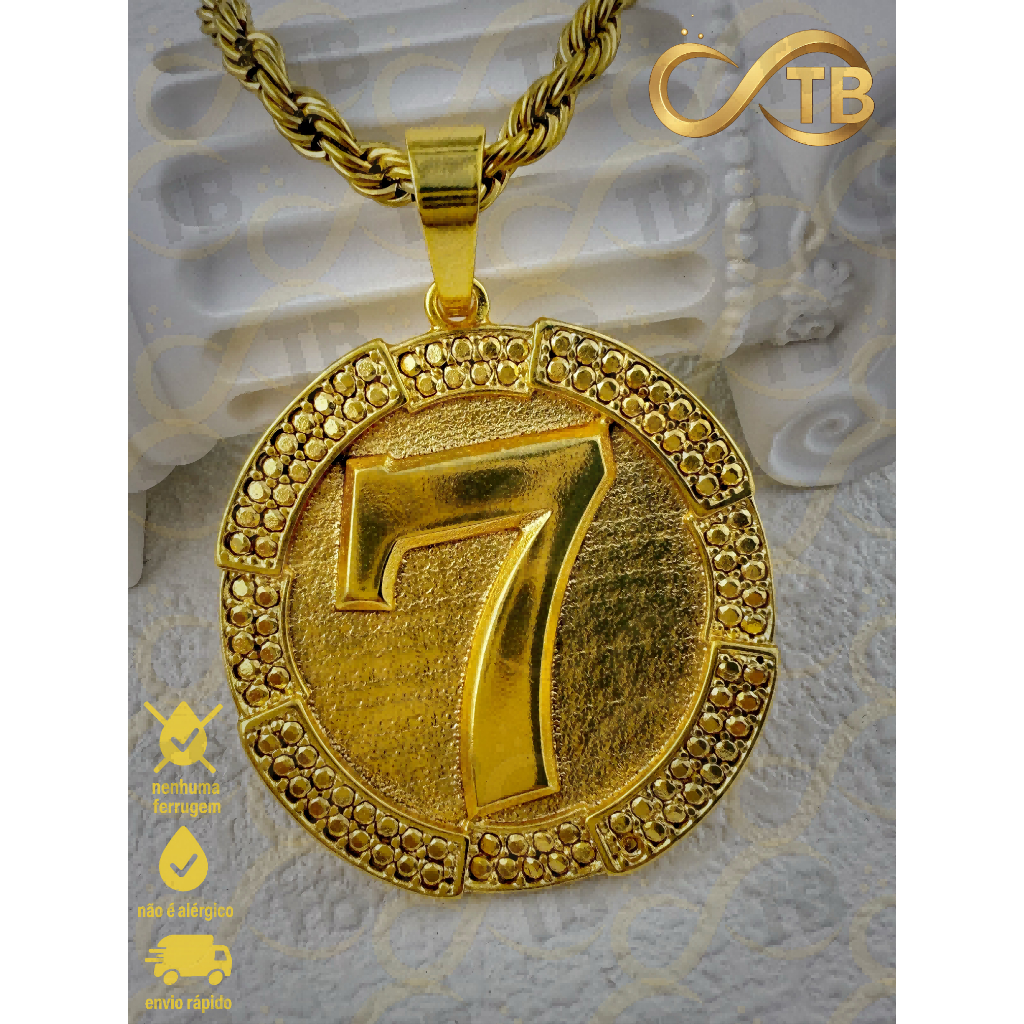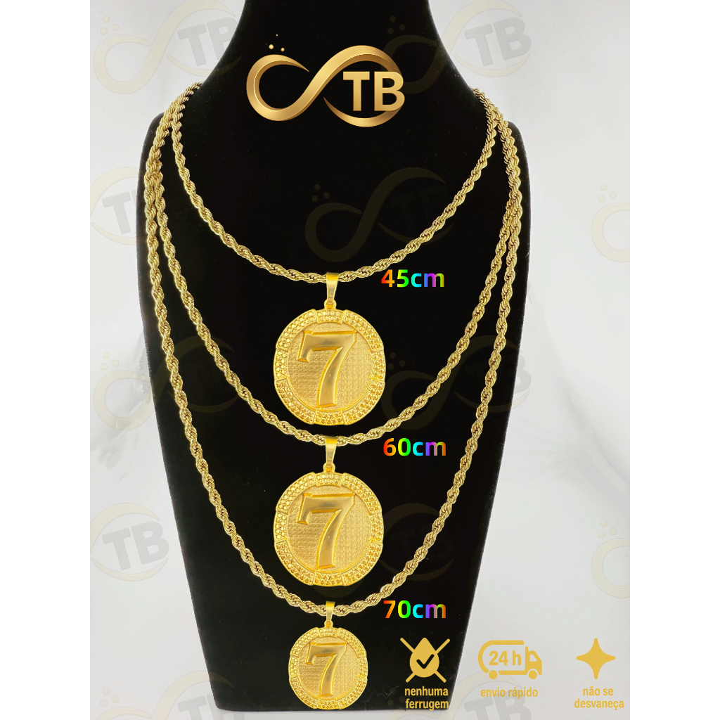 TB Colar banhado a ouro 18K Cordão de Moeda Antiga pingente Lucky 7 de luxo - Boa sorte e estilo