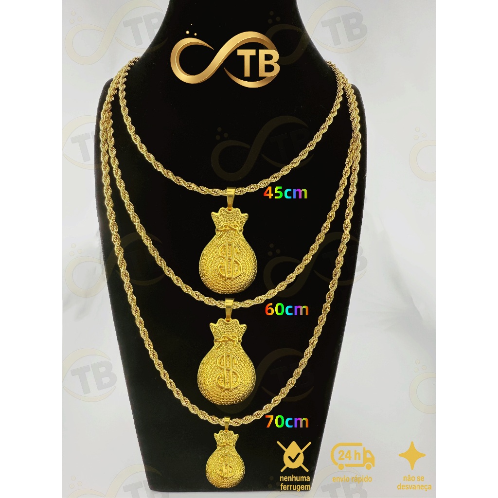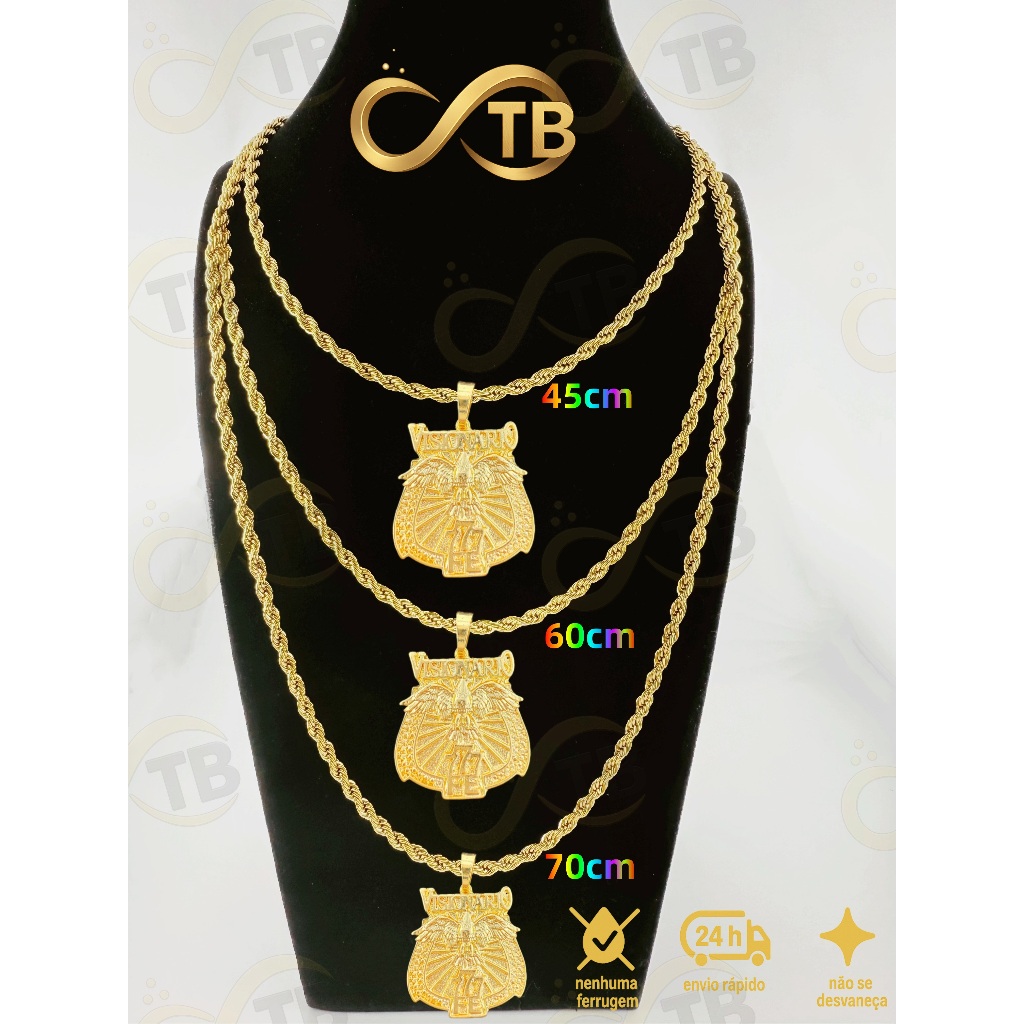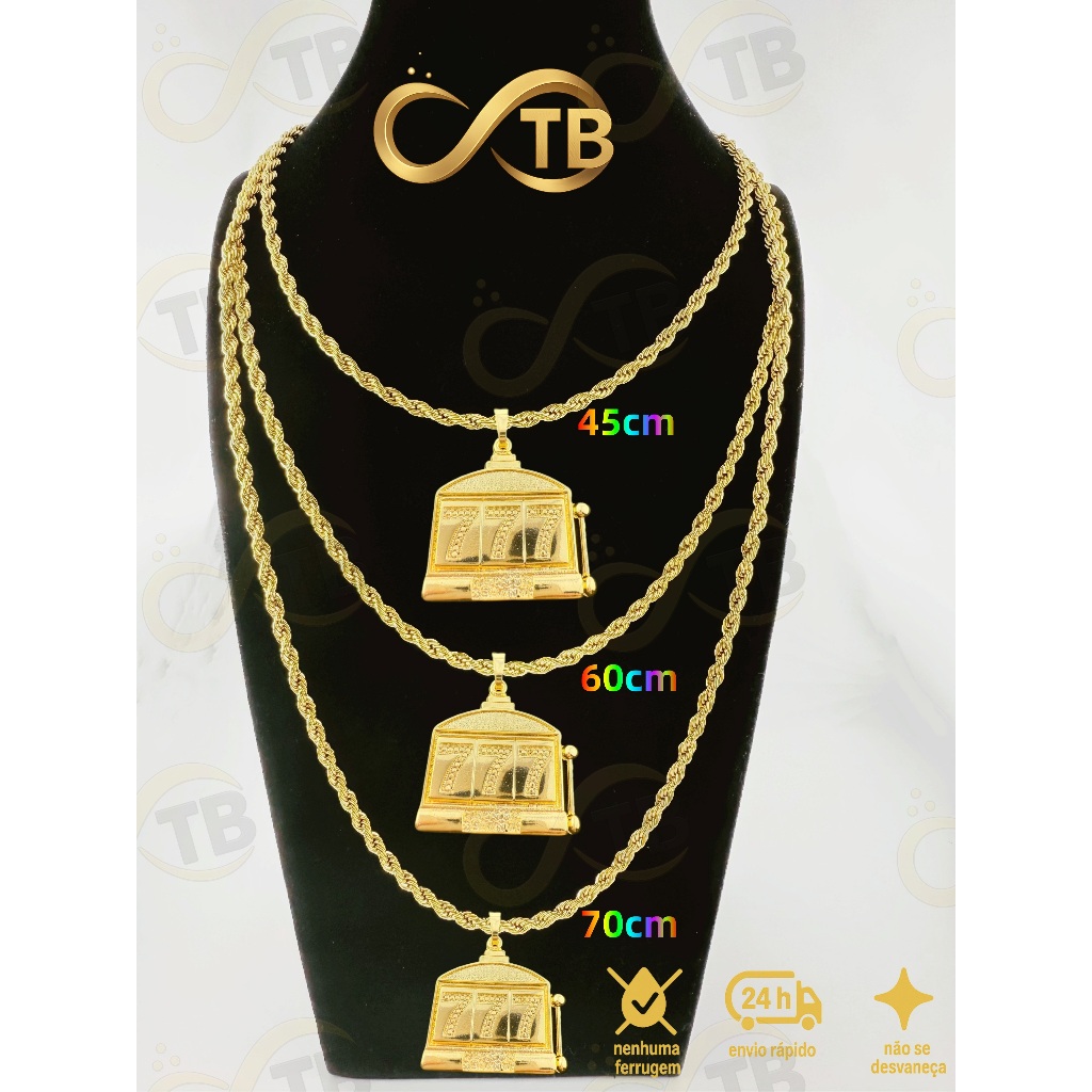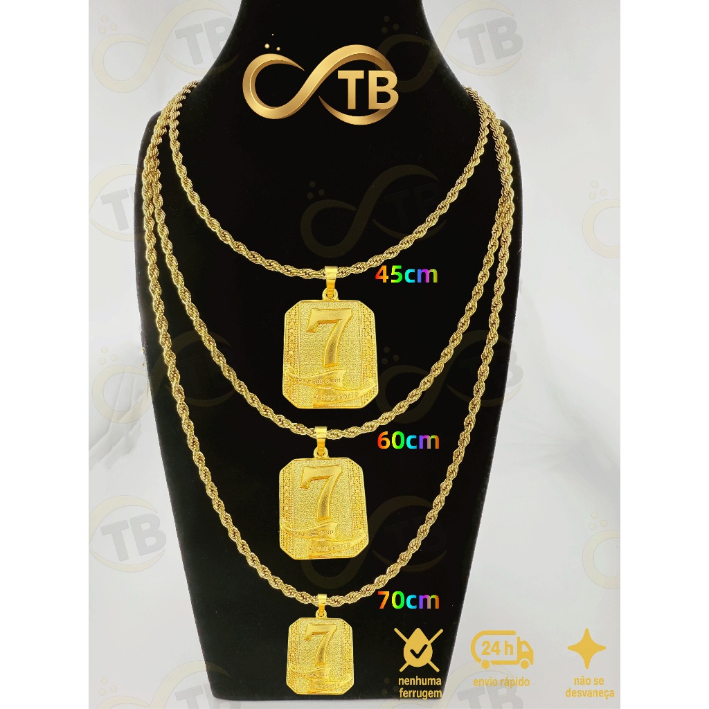 TB Colar banhado a ouro 18K Cordão de Moeda Antiga pingente Lucky 7 de luxo - Boa sorte e estilo
