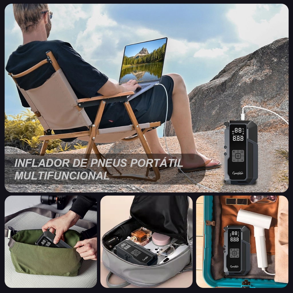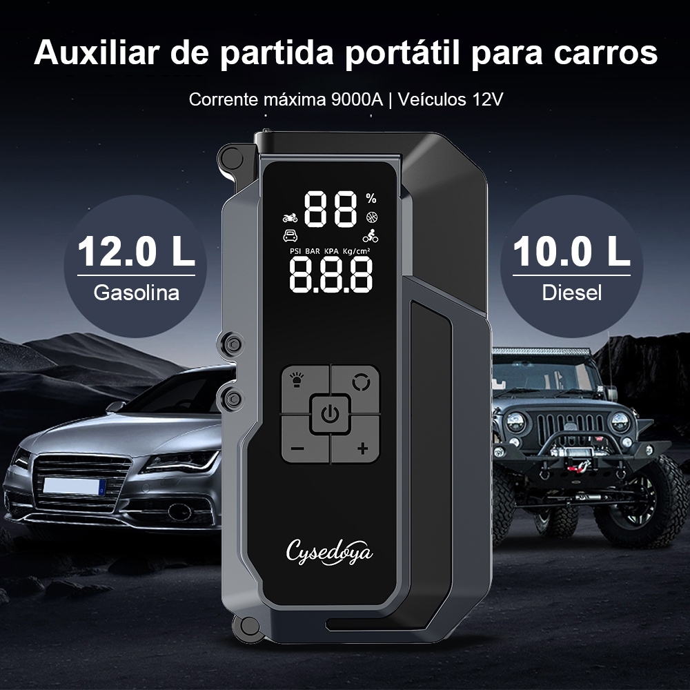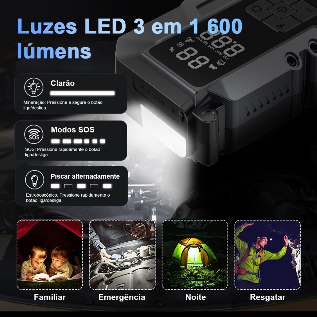 Auxiliar Partida Bateria Compressor Ar Emergência Portátil,26800mAh Auxiliar De Partida Bateria Veicular Com Power Bank