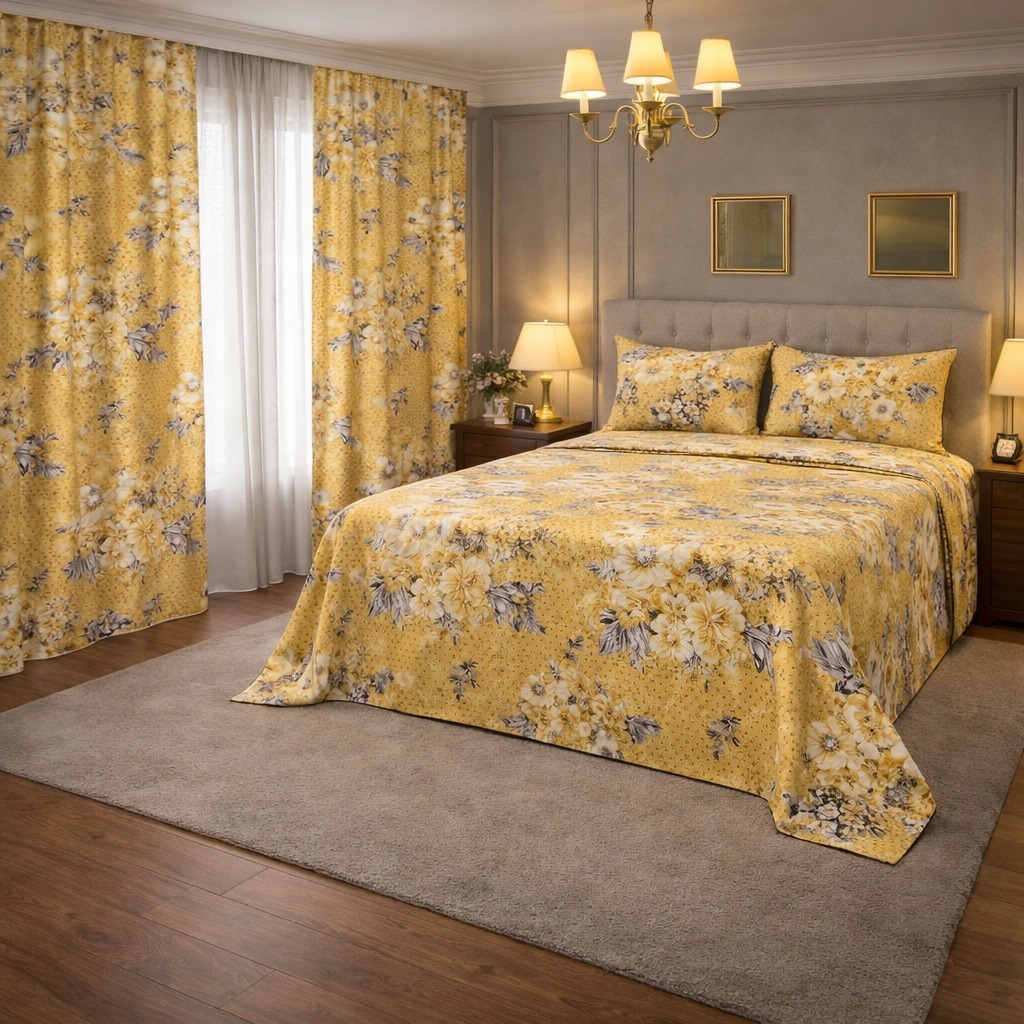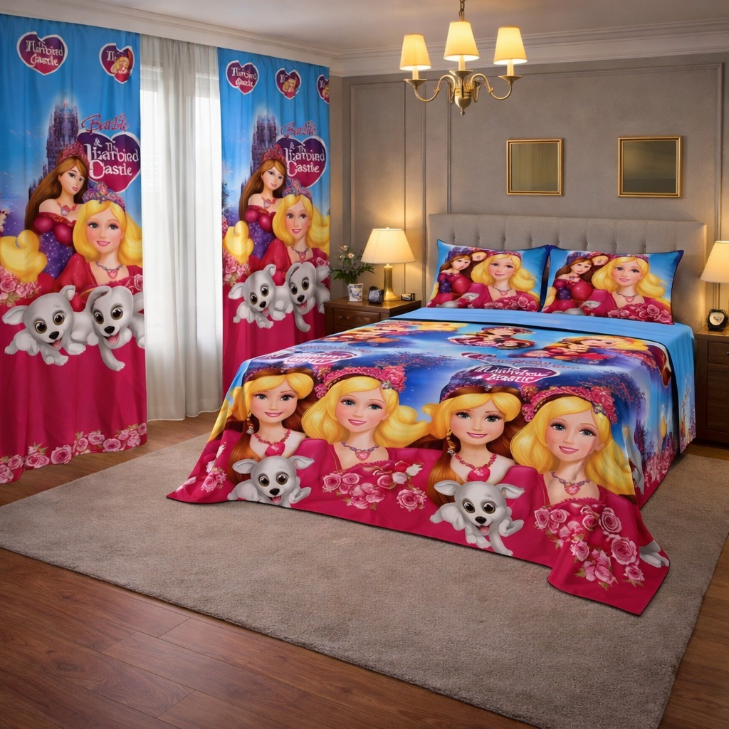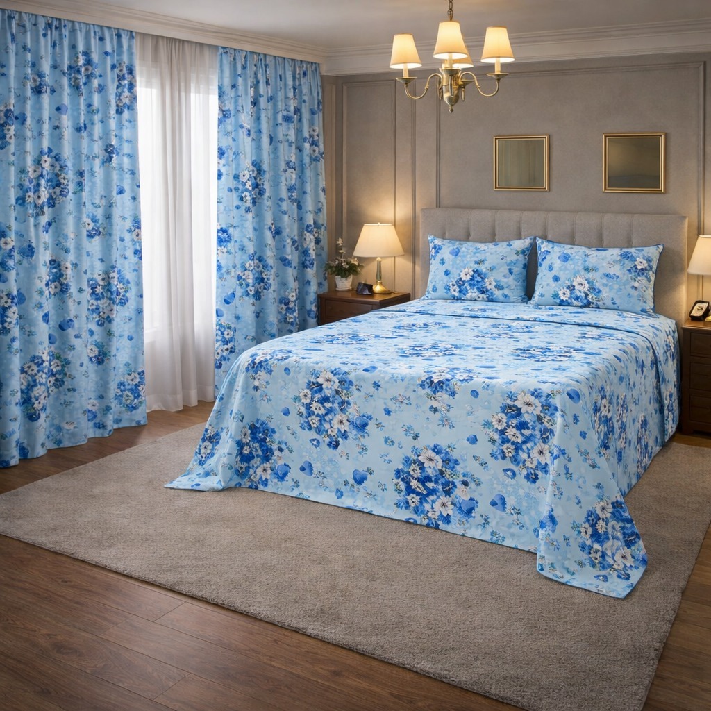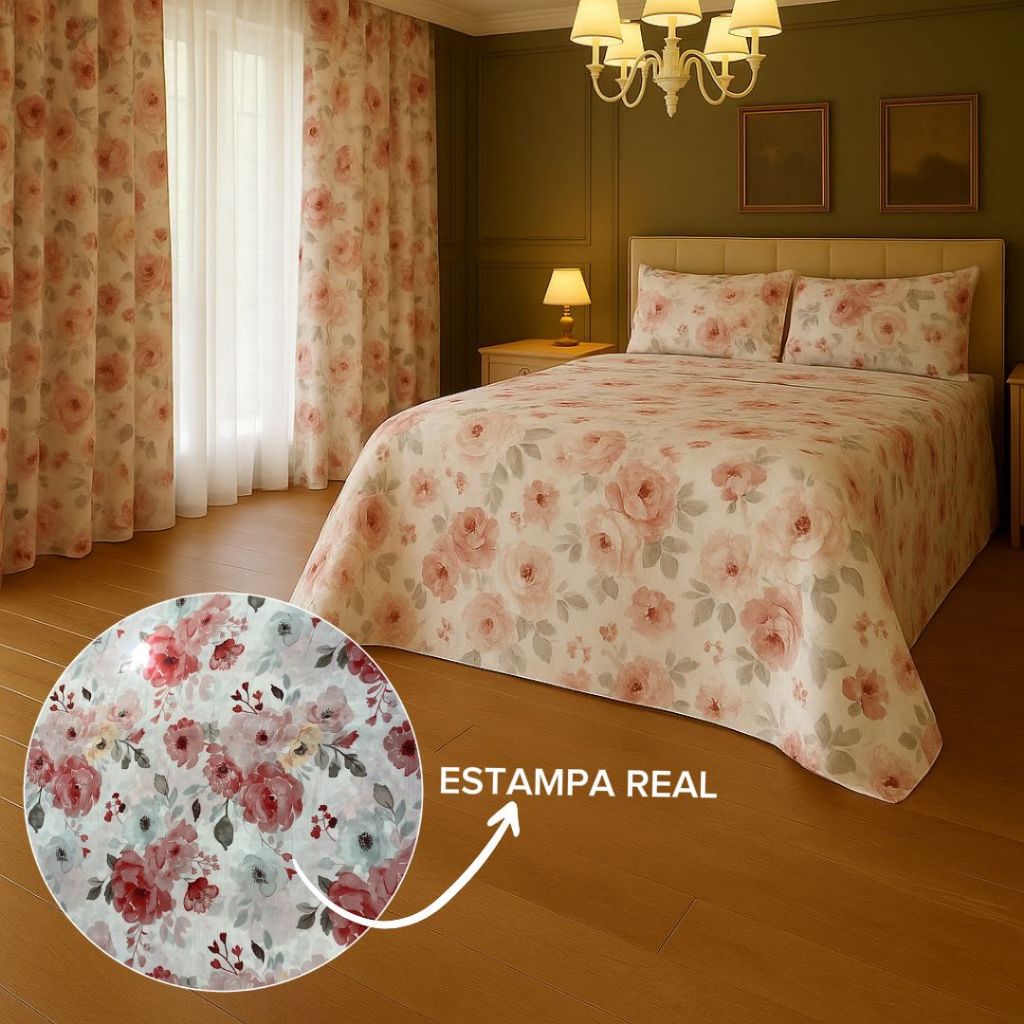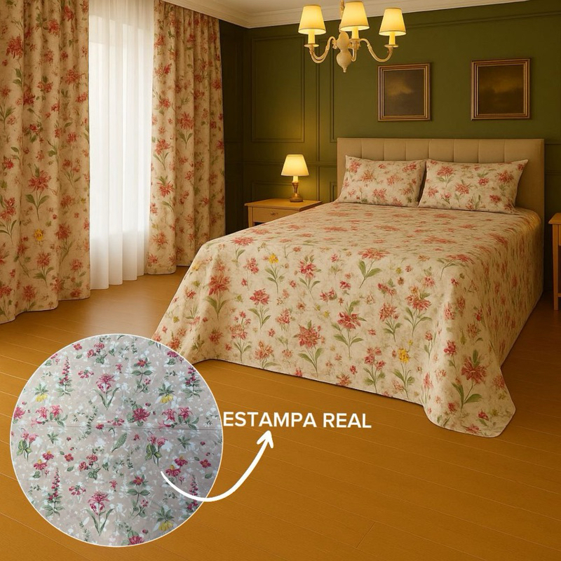 Kit Lençol 4 Peças com Cortina Casal e Queen Toque de Algodão+ 2 Porta Travesseiros *Oferta