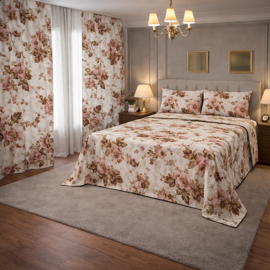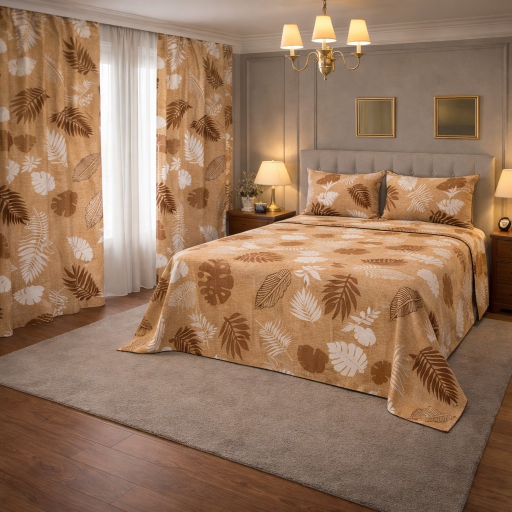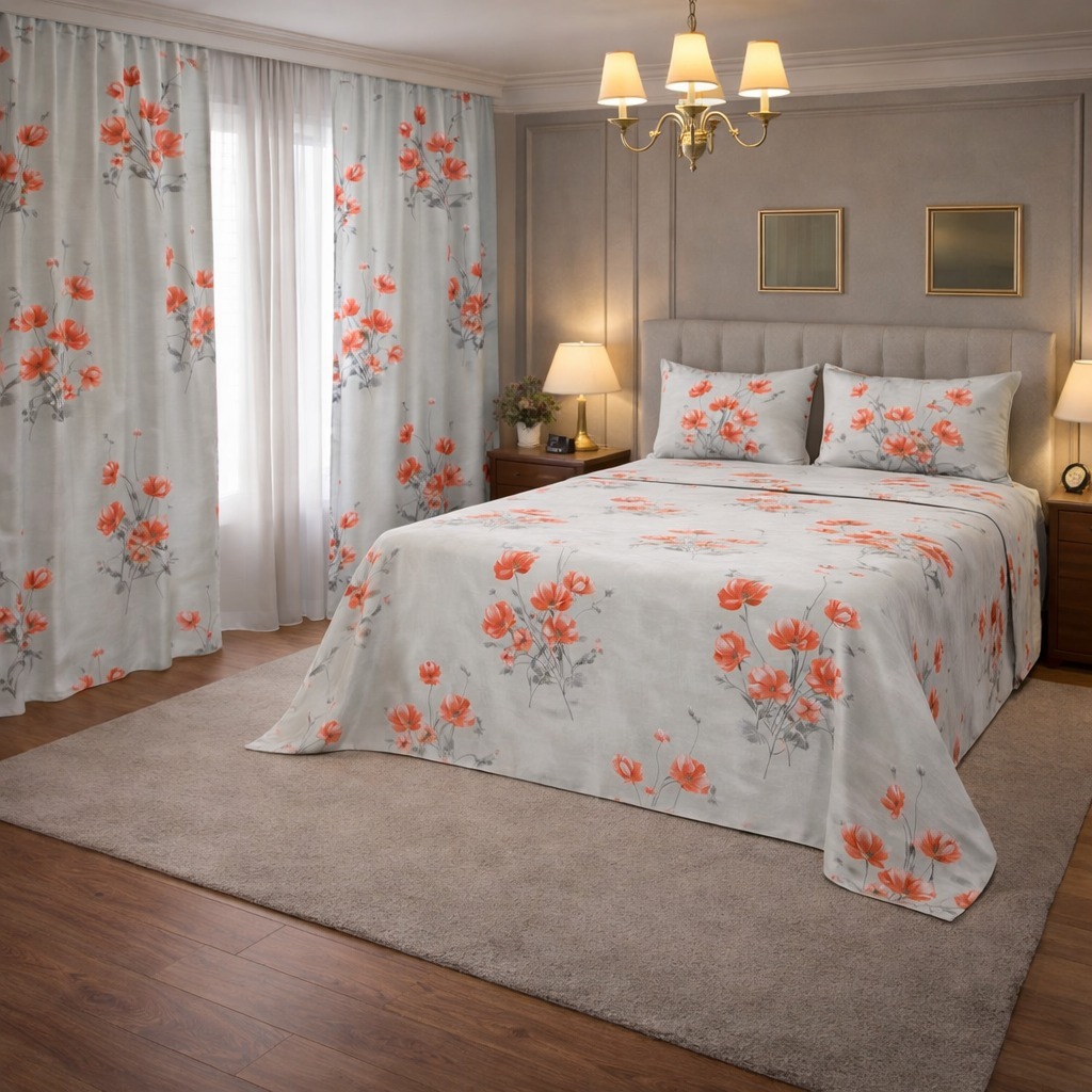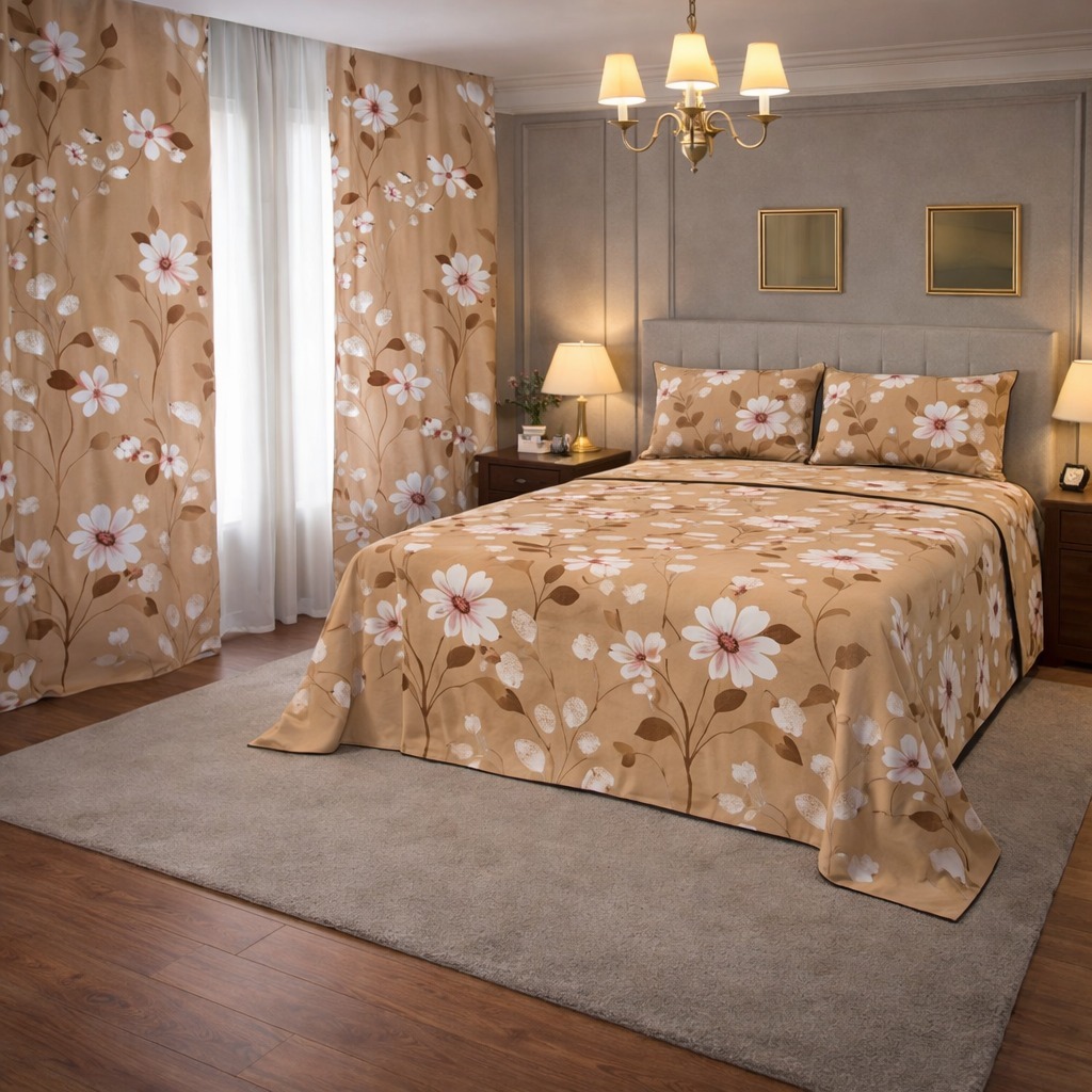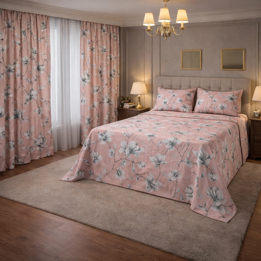 Kit Lençol 4 Peças com Cortina Casal e Queen Toque de Algodão+ 2 Porta Travesseiros *Oferta
