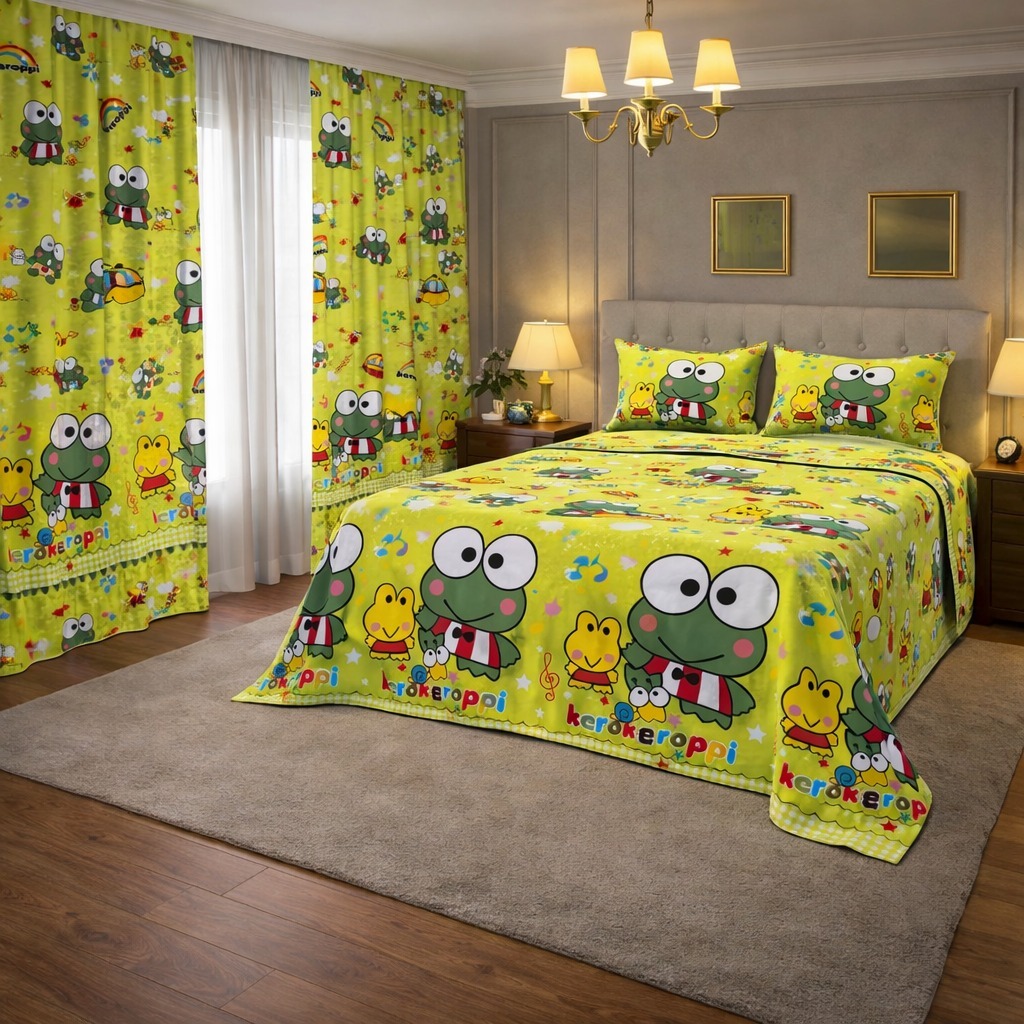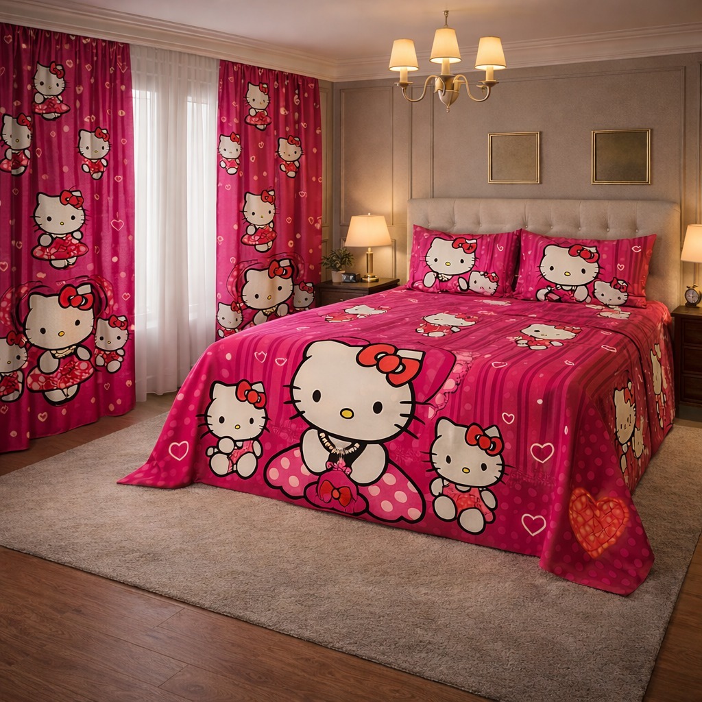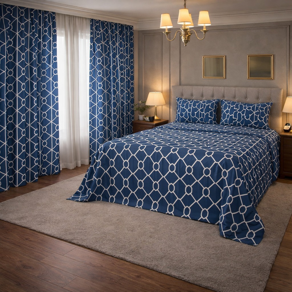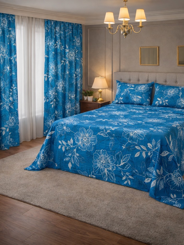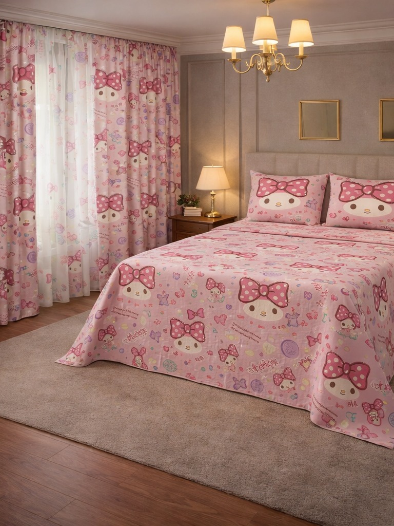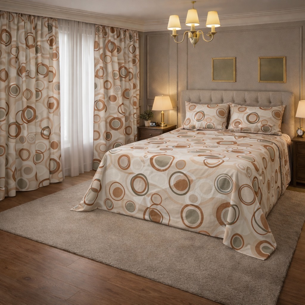 Kit Lençol 4 Peças com Cortina Casal e Queen Toque de Algodão+ 2 Porta Travesseiros *Oferta