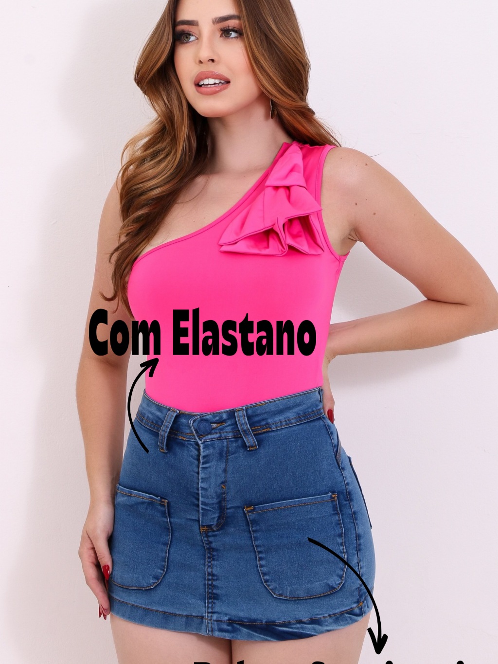 Saia Short Cargo Jeans Feminina Curto Bolsos Frontal Cintura Alta Levanta Empina Bumbum Gringa COM ELASTANO