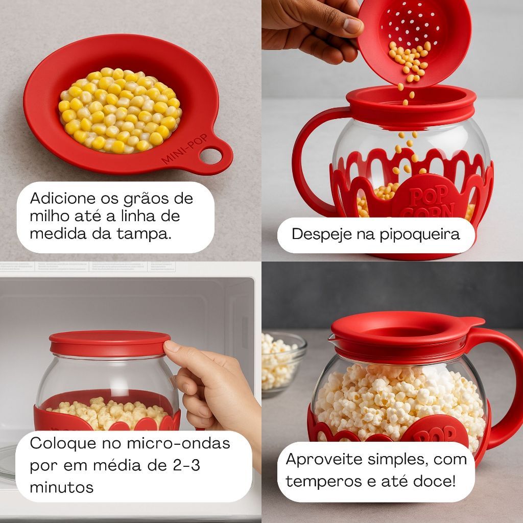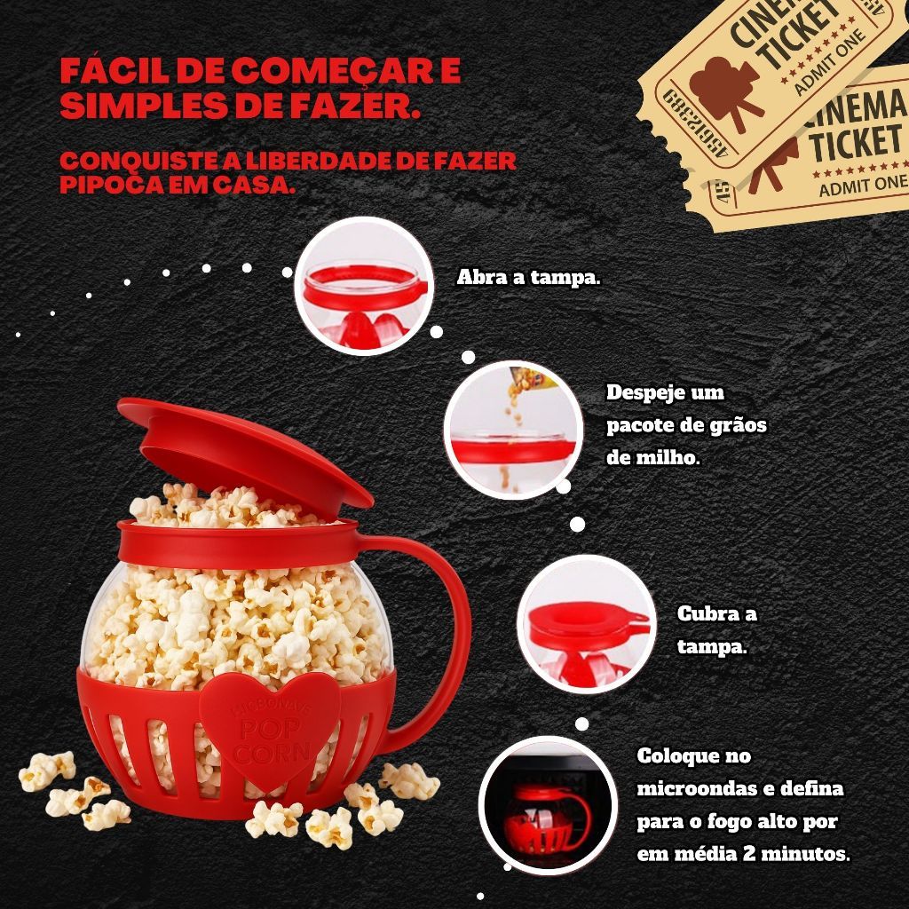 Pipoqueira Fitness Para Micro-ondas Sem Óleo Saudável Prática e Reutilizável
