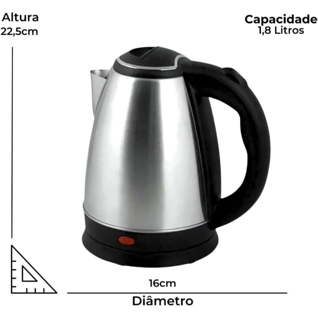 Chaleira Elétrica De 1,8 Litros, 1000 Watts, 127V, Ferve a Água Muito Rápido