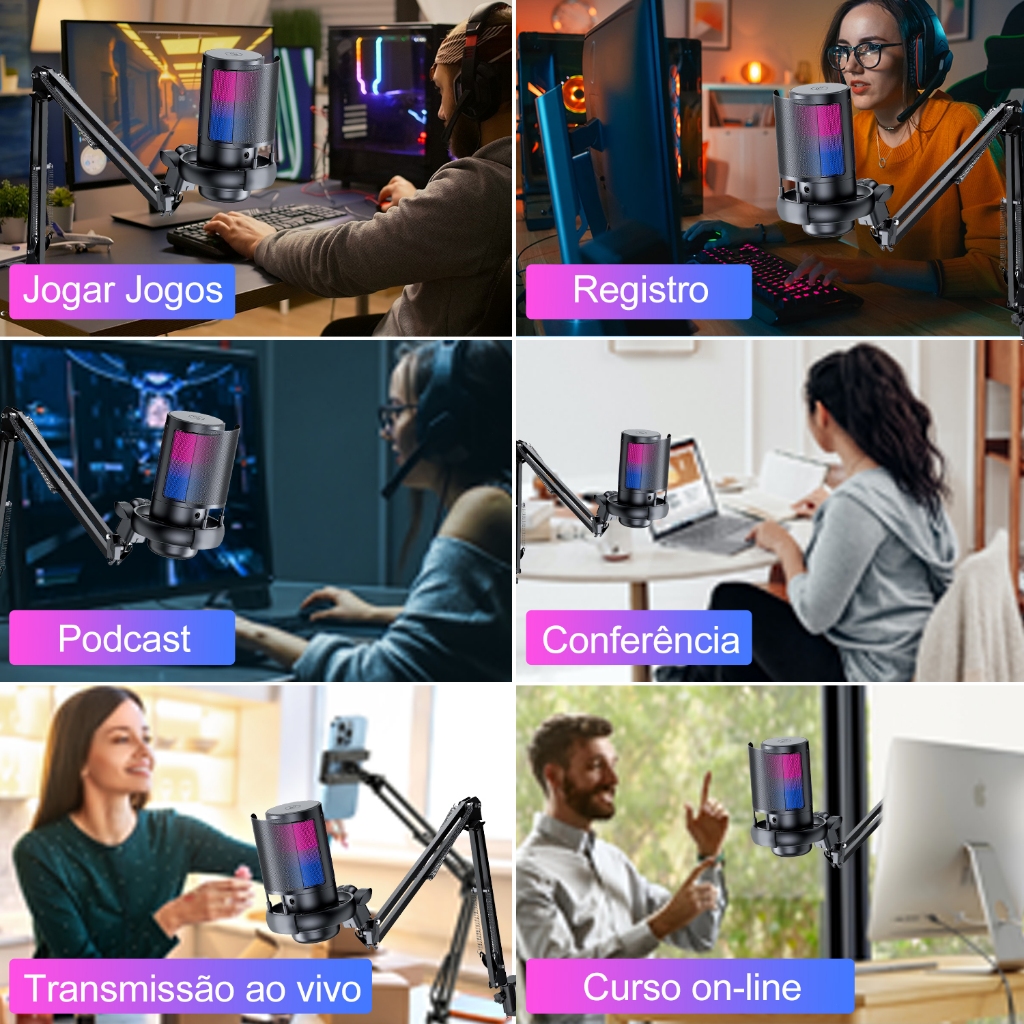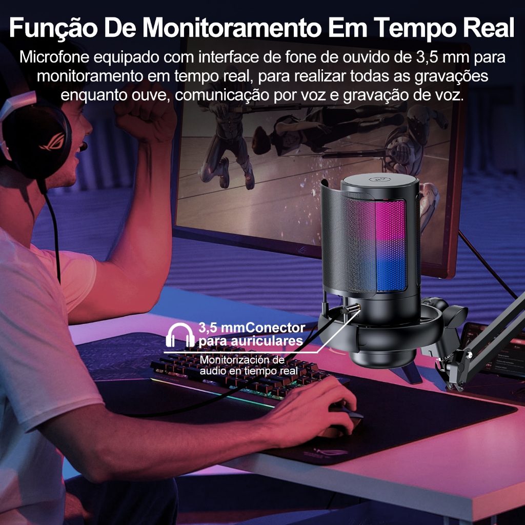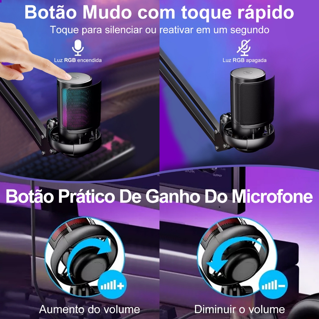 Microfone Condensador USB Cardioid Rgb Para Pc Gamer E Gravação