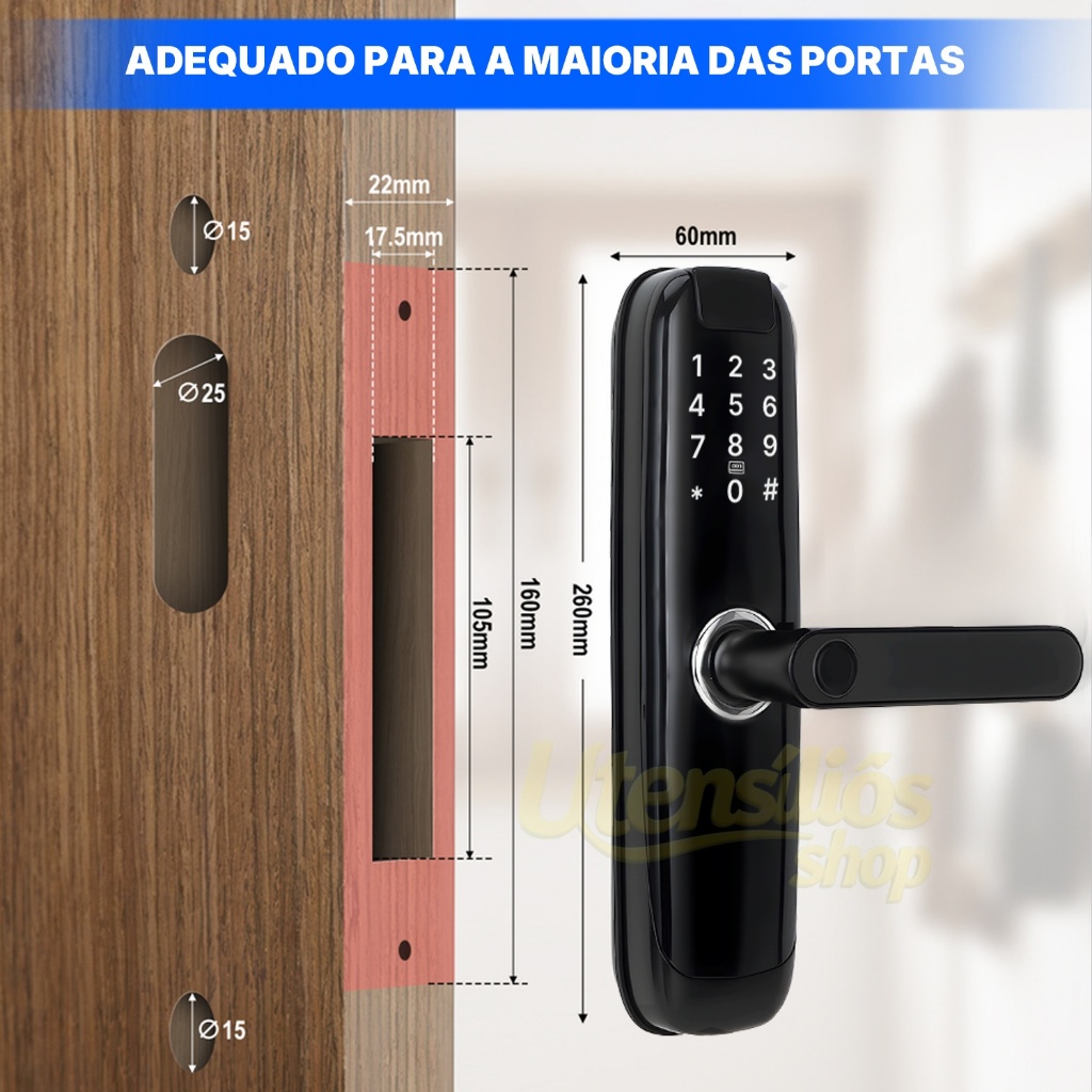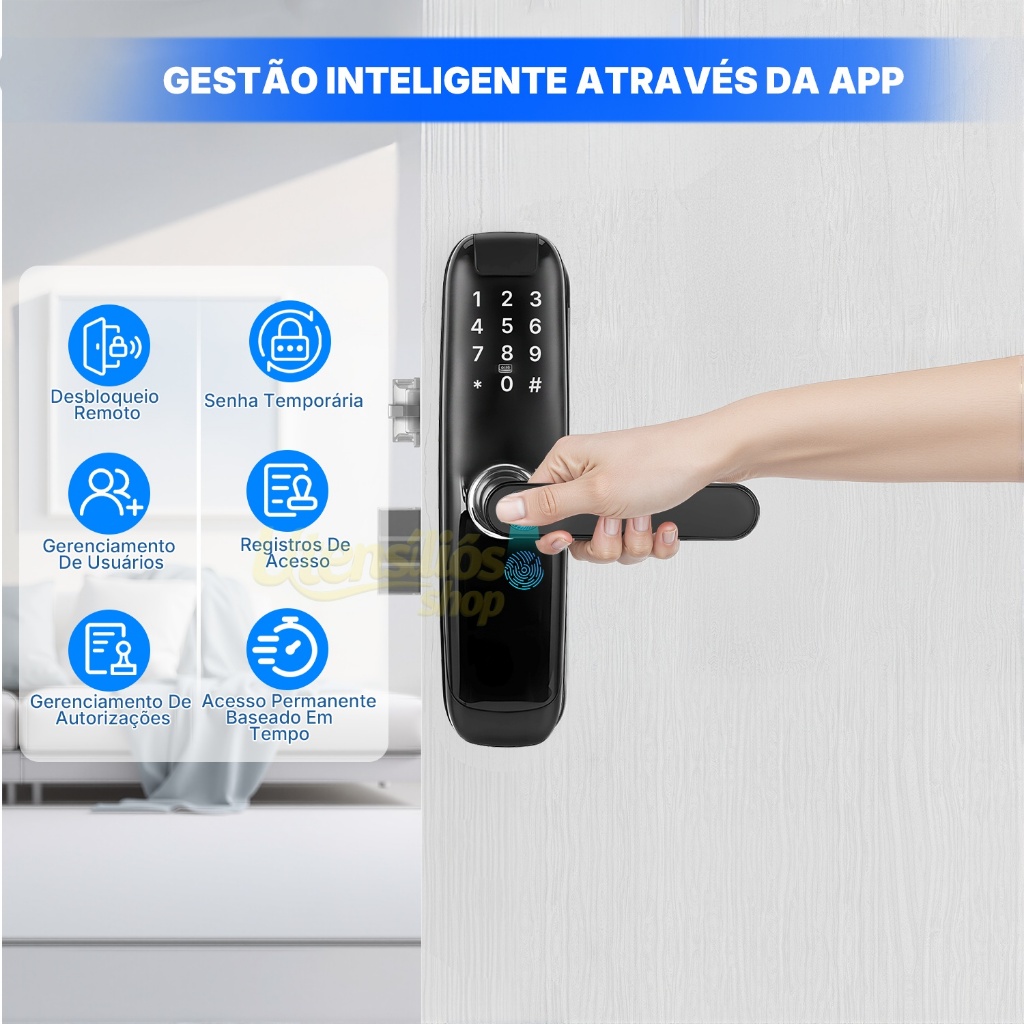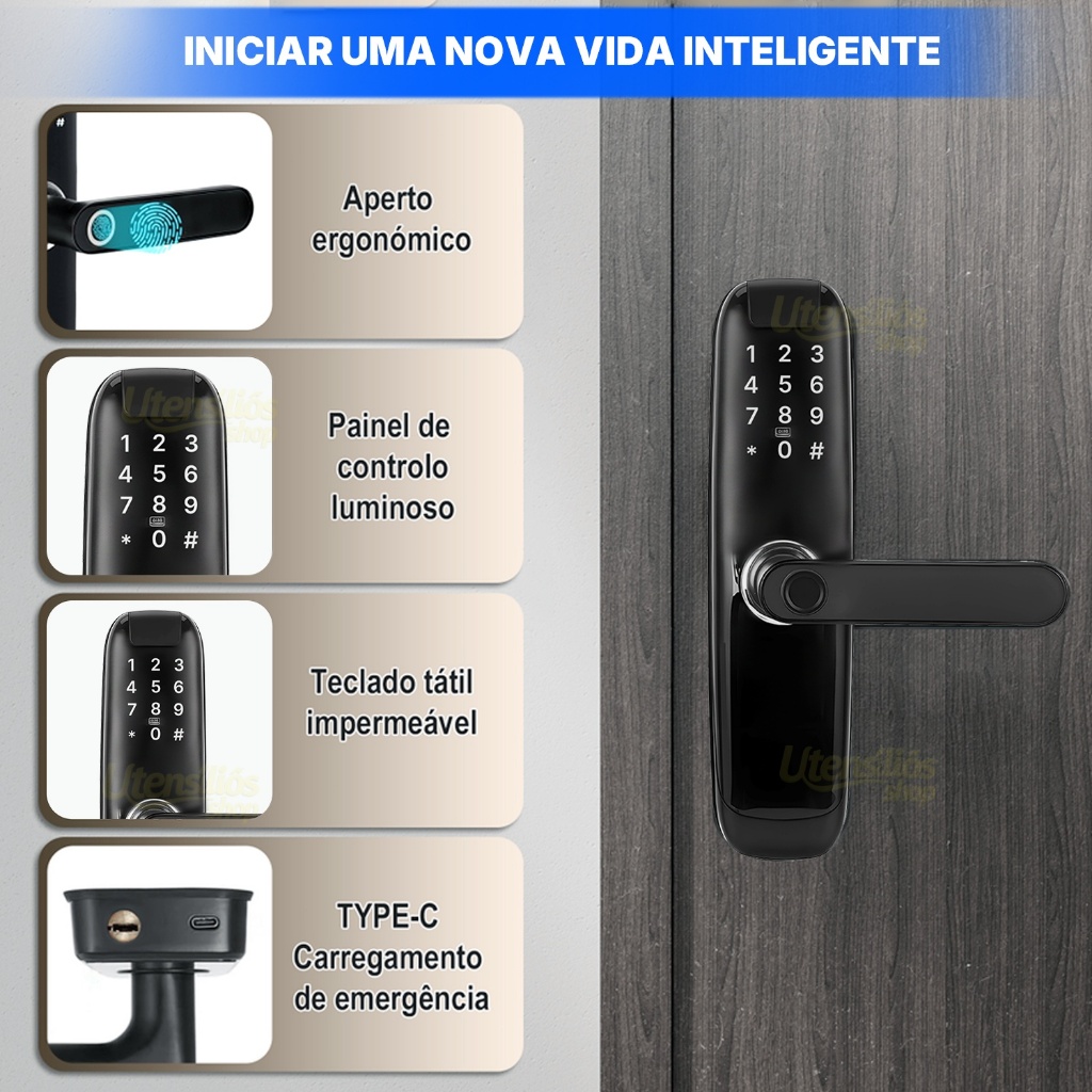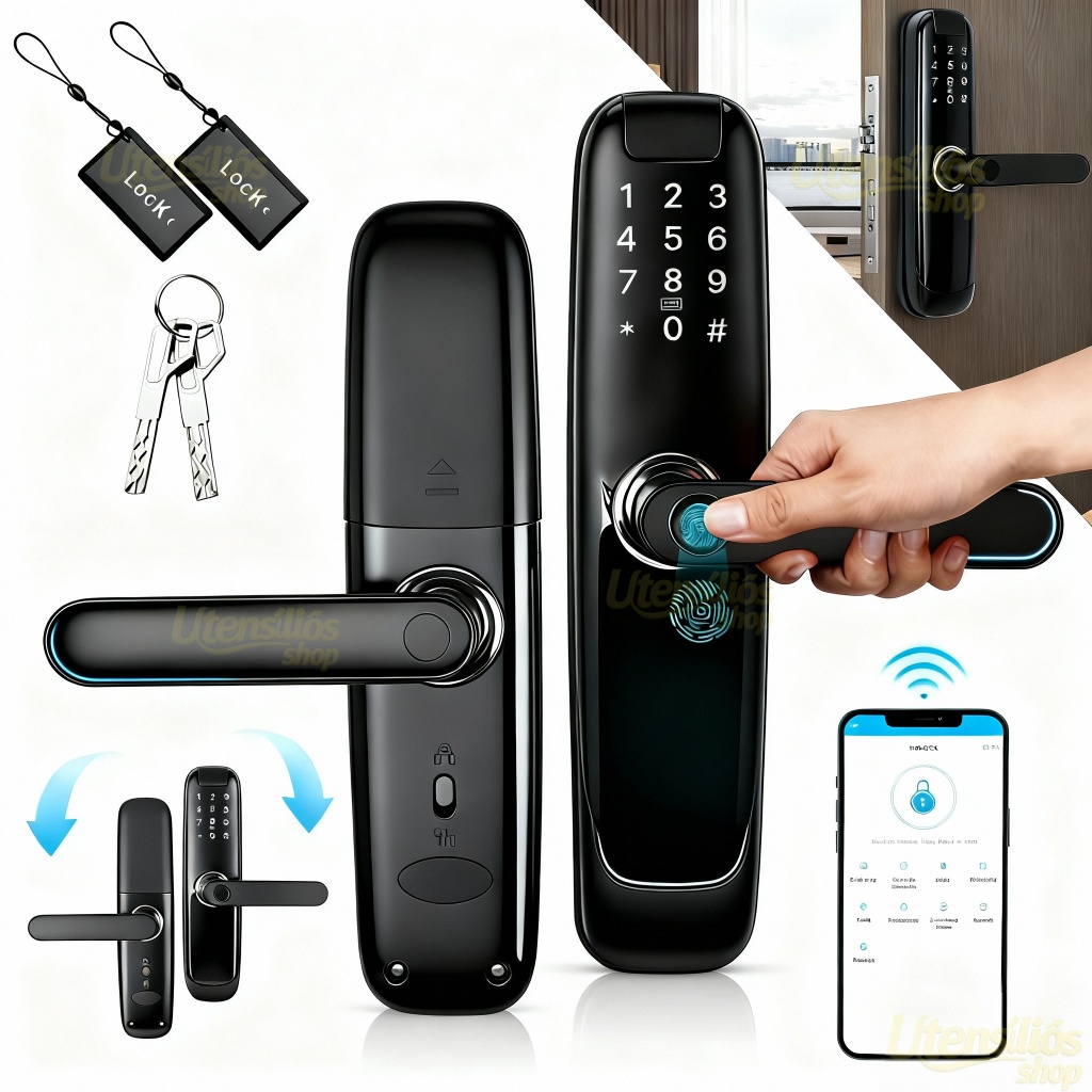 5-em-1 Fechadura Eletrônico Digital Biométrica Wi-fi Com Tuya App