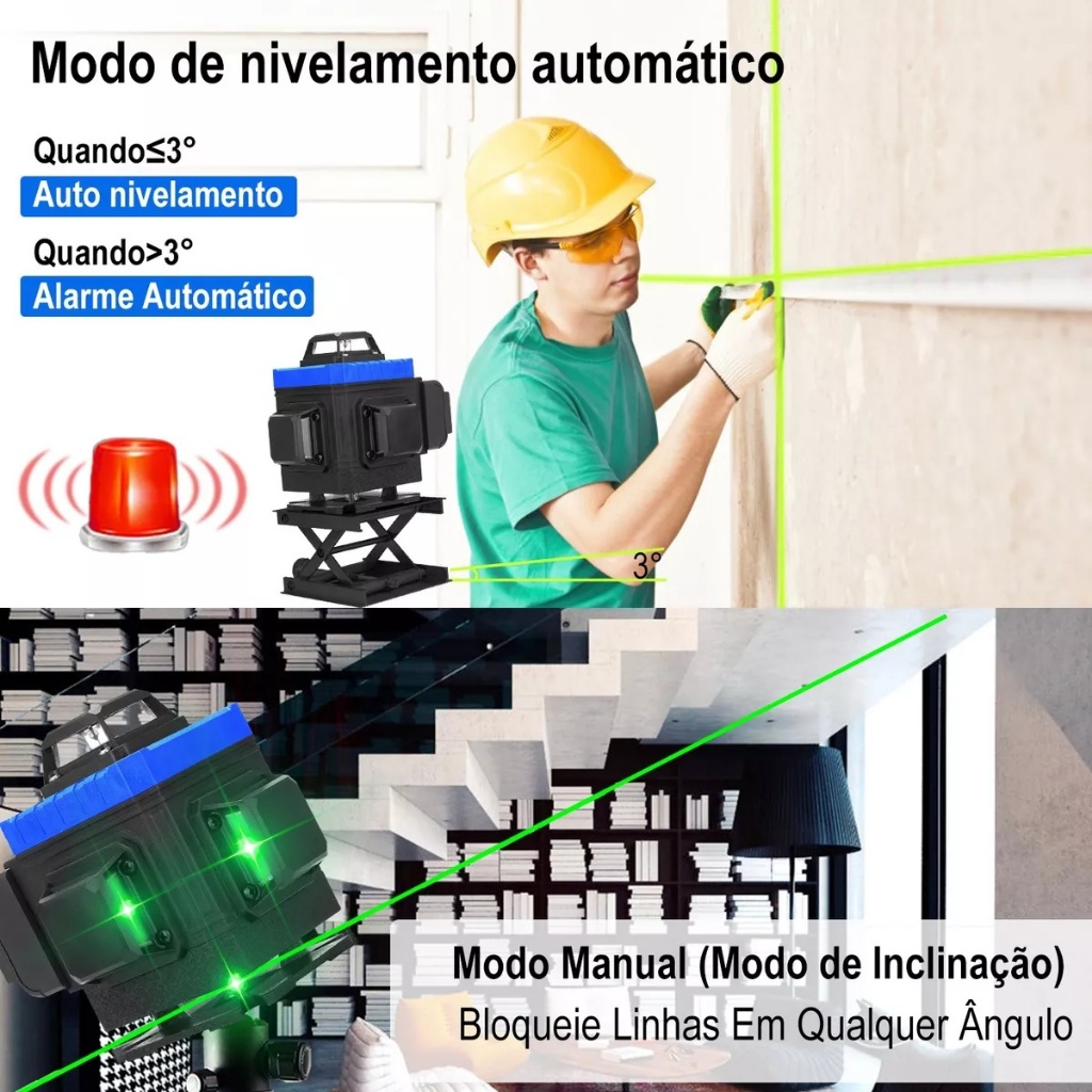 Nível A Laser 16 Linhas 4d Autonivelante+2 Baterias+Suporte