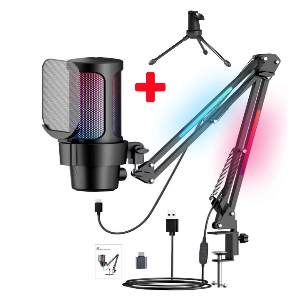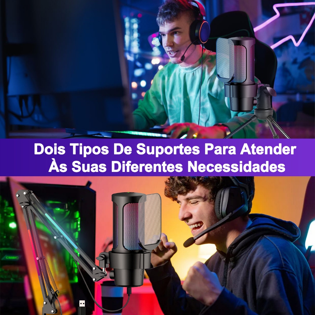 Microfone Usb Ampligame Com Rgb Braço Articulado E Trip